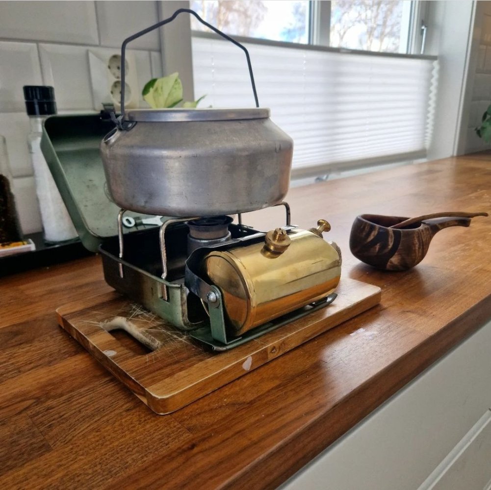 Ikke fra tur, men bli kjent testing under kjøkkenvifta. Bestefars gamle turkjele han brukte med sin spritbrenner, passer utmerket ilag med 111'n.- 299 svar