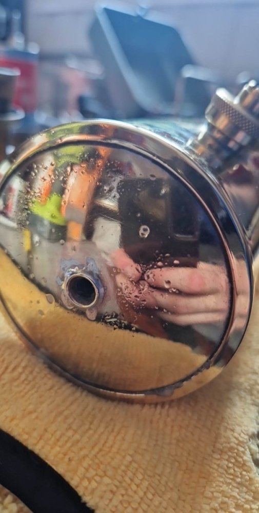 Tusen takk! Det er flere som har lagt merke til det hvite rattet. Jeg viste ikke at det var skjeldent så jeg tenkte ikke noe over det ved kjøp 😅 Takk for det, men det ble noe mer jobb enn forventet. Etter jeg fikk ny NRV-ventil og et nytt-brukt pumpelær som fikk stå i olje over natten. Så pumpet jeg opp skikkelig trykk å da kom det en lekkasje ved en av gjengepaetiene som fester tanken til kassen. Så i dag mårrest ble det en tur på jobb for å lodde den med sølvlodd og flussmiddel. Ble tett og er fornøyd med det, aldri loddet noe som helst utennom elektronikk 😊 Den trenger en ny dyse, strålen ser ut til å være litt skeiv. Men får det ila uka.