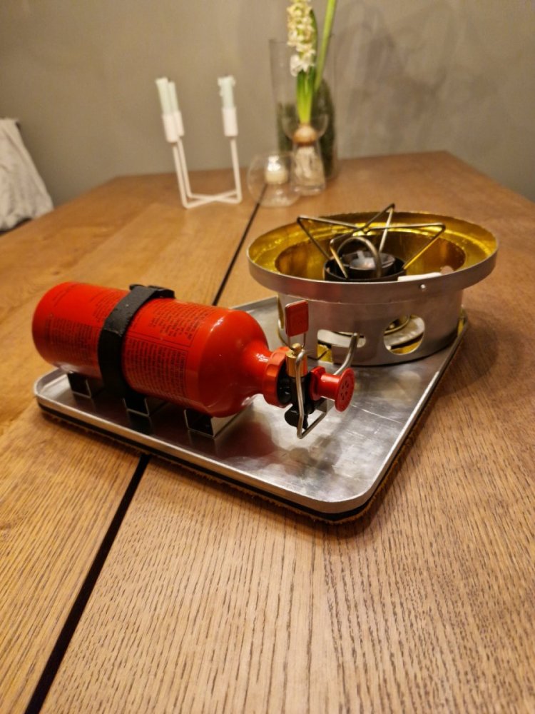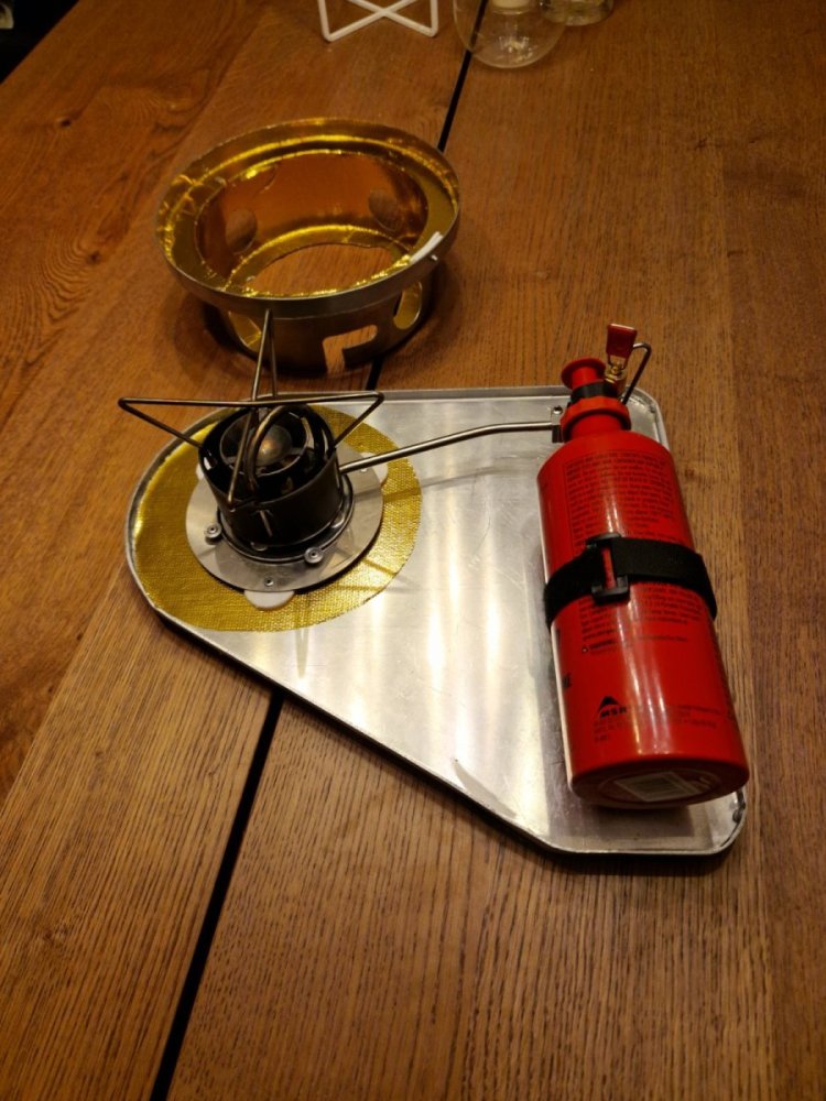 Takk! 😊 Vekten er noe høyere enn jeg ønsket da jeg ikke har tatt meg bryet med å skaffe til veie riktig tilsatsmatriale for sveising. Ble så jeg lagde vindskjermen i 1mm rustfri 304. Vindskjermen veier 460gram 😂 hadde desverre ingen reste-plater i 0.7mm 304 heller så ble bare den enkleste utveien denne omgangen. Platen er aluminium men er laget i 1.5mm og veier 430gram. Den har også liggeunderlag limt under hele platen. Jeg skal lage vindskjermen i aluminium, har delene liggende for det, men må ha en tynner tilsats enn 2/2.4mm. Tilsatsmatrialet jeg har til rådighet er for tykt og av feil type, sjøvannsbestandig tilsats matriale som 5356 har maks arbeidstemeperatur på 65c, ved høyere eksponering er sjansen for sprekkdannelser store. Kjelestøttene trengs ikke, høyden er lik om kokewillyen står på kjelestøttene eller på vindskjermen.