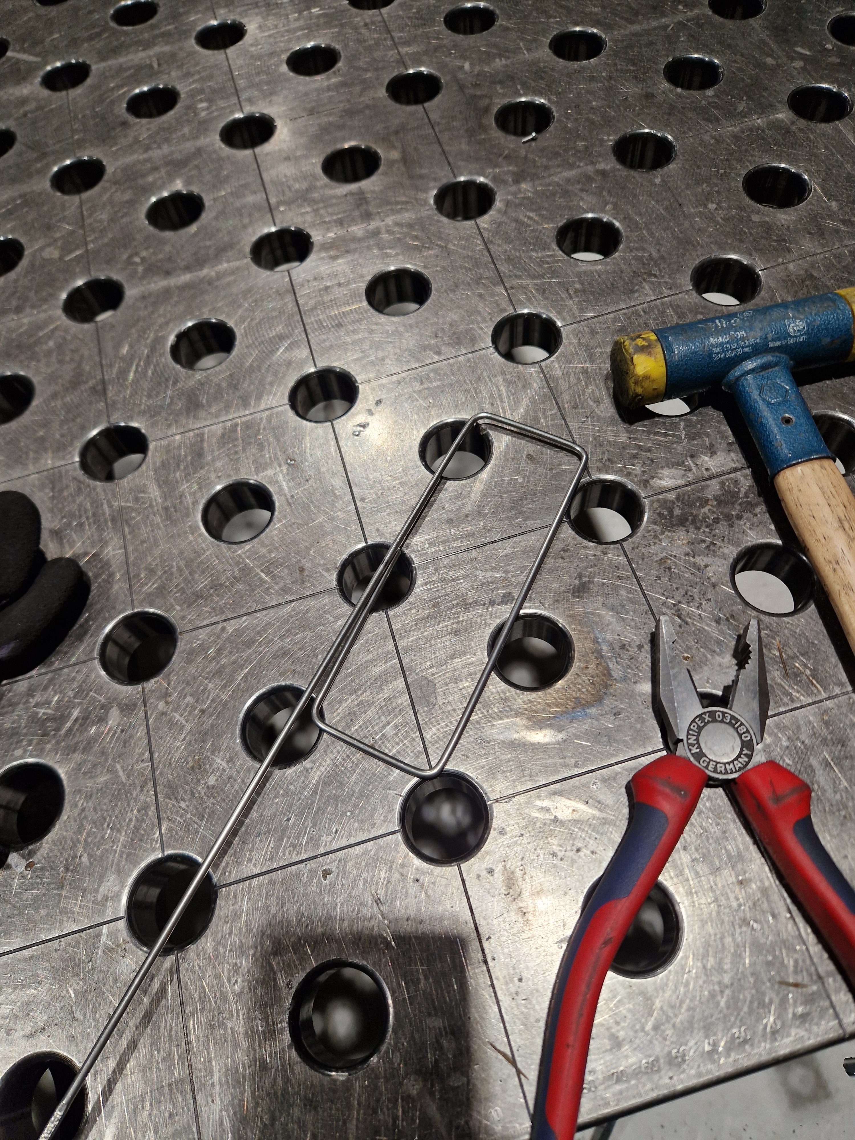 Litt pusling i matpausene. Klippet og valset 0.5mm aluminiumsplate som blir til den indre vindskjermen/kappen. Siden det er 0.5mm legger jeg den bare med en liten overlapp og popper den sammen med noen små popnagler. Håndtakene på Ulrich kjelen syns jeg er litt i det minste laget, så her er første prototype av et håndtak. Disse er laget 3.2mm rustfritt, skøten som skal inn mot kjelen sveises. Legger inn en liten knekk/bøy på midten av håndtakene slik at de legger seg inntil kjelen under transport. Skal se om jeg fortsetter litt i kveld, må klippe til 0.5mm rustfriplate som skal bli innfesting til håndtakene og klippe til den ytre vindskjermen/kappe. Den ytre skjermen og feste til håndtakene blir punktsveiset. Snapchat-31989552.mp4