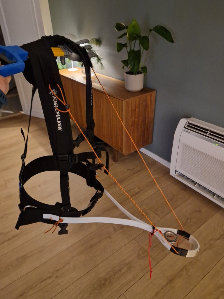 Vekker denne gammle tråden til live igjen Nå vet jeg ikke om jeg akkurat får bruk for denne, men hadde noen matrialer liggende. Ikke min patent eller oppfinnelse, sett bilder av to stykker som er relativt like I utførelse. Hadde igjen litt 2mm PTFE plate som var rundt 1m lang, desverre litt for kort til en slik type kompassholder. Så her måtte jeg skøte to deler sammen, brukte 0.5mm aluminium og 3 aluminium popnagler for dette. Stålsplinten inni popnagelene ble fjernet så de ikke tukler med kompasset. Her er allefall noen bilder om noen ønsker å lage seg noe lignende. Kunne sikkert vært lettere, men 170 gram er ikke all verden heller.Snora er justerbar, slik at en får finjustert høyden på holderen. Klippet PTFE'n til 25mm så jeg kunne bruke en slik webbingspenne til å låse kompasset. Brukte en fil for å lage litt struktur i plastmatrialet slil at spennen biter bedre. Skal bytte til en annen type, denne er bare provisorisk. Pulkselen fikk påsydd den ene delen av borrelåsen, slik at kompassholderen kan monteres og demonteres enkelt.Innfesting til pulkbelte. Får ta med holderen til fjells for en testtur for å se om en trenger å gjøre noen justeringer. Tror muligens jeg korter den inn noe.- 13 svar