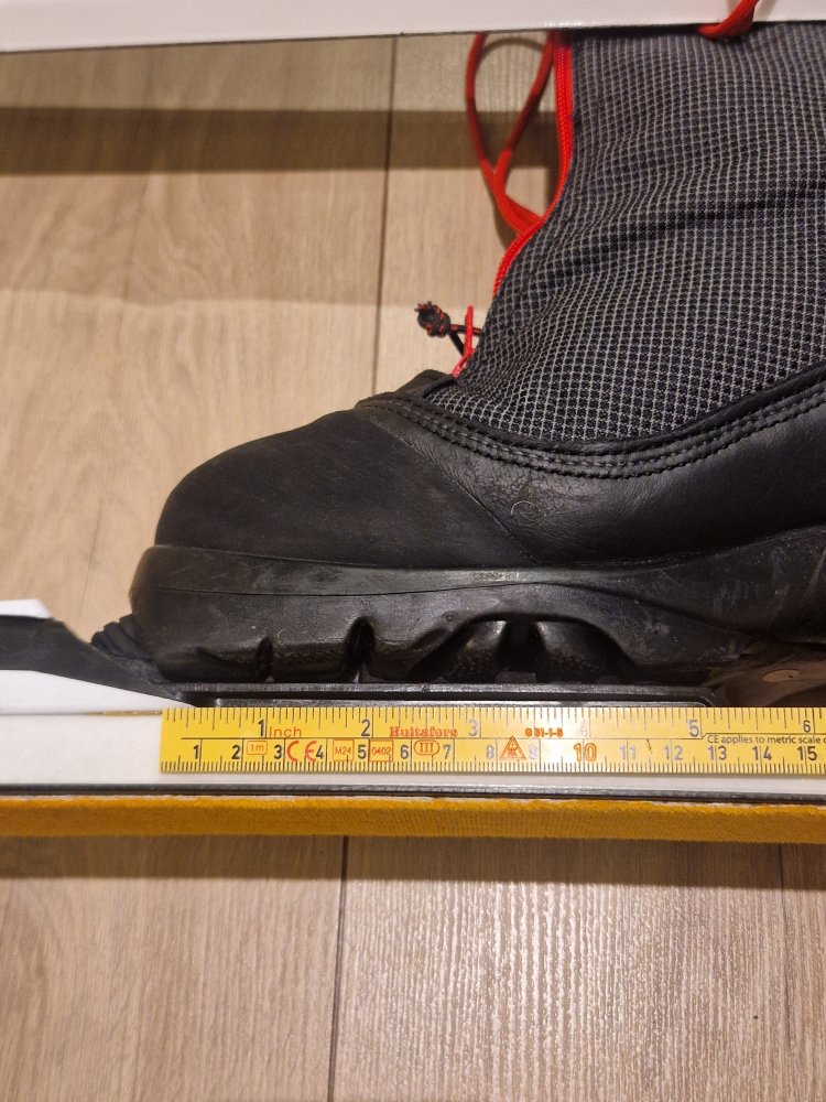 Den ekstra bredden på magnum, men dette skrår inn mot innfestning, øker for så på midten på skoen til å smalne mot hælen igjen. Ikke spesielt viktig uansett. Samme repkit vil fungere på begge typer binding sånn jeg ser det. -
