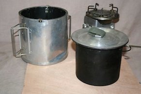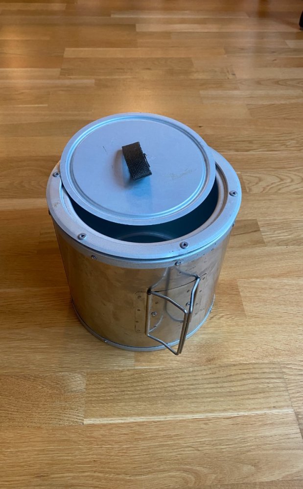 Dette er nok prototypen FFI lagde men aldri ble satt i produksjon. Men det ble produsert 15 stykker av de som ble testet I felt. Oppsettet Cato Zahl Pedersen brukte, dobbel vegg og kjelestøtter inni. Har en følelse på at jotun-spannet har sin inspirasjon fra denne kjelen. " verdensrekord i snøsmelting, 12L på 1 time" Kokewilly kjøpt hos sportsnett på 2000-tallet. Har sett et par andre bilder av denne, lokket er enten hult eller med isolasjon inni. Eksosenvarmluften går igjennom kappen og ut igjennom gjennomgående hull i lokket. Tror nok denne også er av to deler, ser ut til å være teflonbeleegg på denne kjelen. prinsippet vil jo være det samme på disse kjelene. Du varmer ikke bare bunnen på kjelen men hele kjelen varmes opp og avgasser kjøles ikke ned like fort av omgivelsene.
