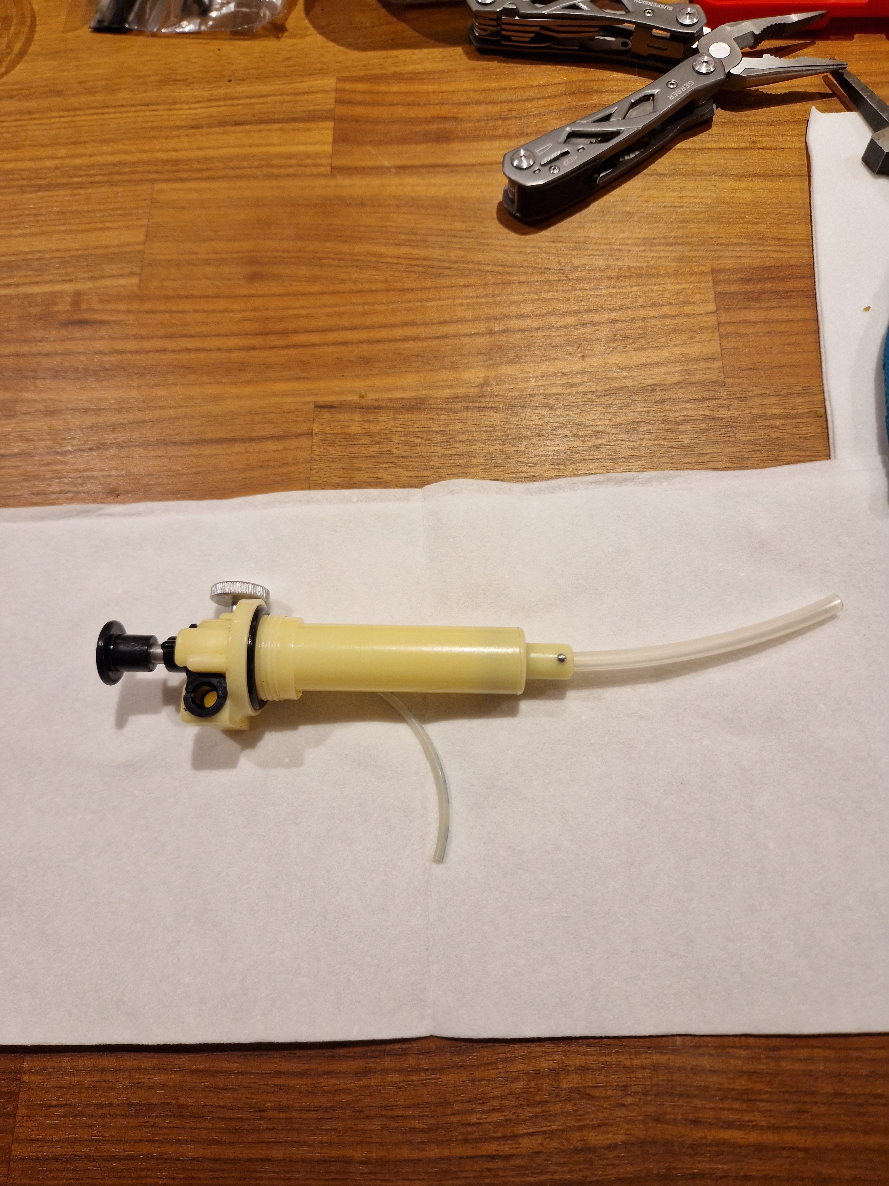 Testet en tredje duraseal bare for å være sikker, pent brukt pumpe som jeg kjørte uten filter på fuel pick-up. Satte på et helt nytt pumpelær i gummi. Klokket inn på 2min 48sek. Tilnærmet likt de to andre duraseal pumpene. Nå er jo ikke dette veldig viktig, men jeg liker ikke tanken på at noe produsert for over 40 år siden skal gjøre primusen raskere enn dagens pumper. Gul pumpe + XGKII er helt klart oppe å krangler med en godt pumpa omnifuel II på effekt.
