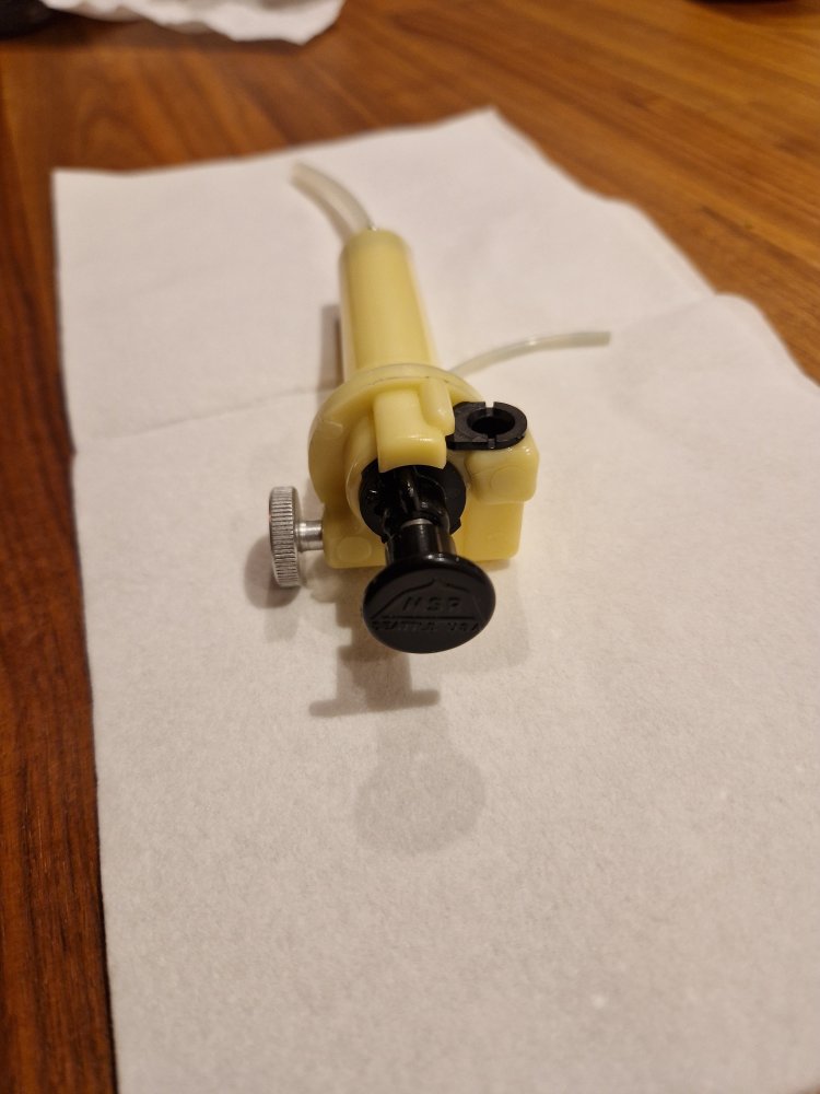 Det kommer! 😁 Har overhalt den originale pumpen, slangen som holder NRV-ventilen på de gule pumpene morkner opp og blir til pulver med tiden. Dagen den skal fyres må den såklart fyres sammen med sin originale pumpe. Ikke langt unna men det er to forskjellige utgaver. Blått hus er som regel pre 1980 og finnes vel på modellene 9A og GK? Har sett den der, Doc Mark er virkelig en kunnskapsrik person når det kommer til primus. Min XGK II som jeg fikk kjøpt gjennom CCS var også helt ubrukt når jeg mottok den. Men jeg ser at å bruke den ikke er et spesielt stort problem, forvarming på rødsprit samt en vask i ny og ne. Holder den i fin skikk. Pumpene som følger med feks XGK II er relativt skjøre å kjent for sine problemer. Den gule pumpen som følger denne fra 1982 er en av de bedre pumpene som msr hadde før.