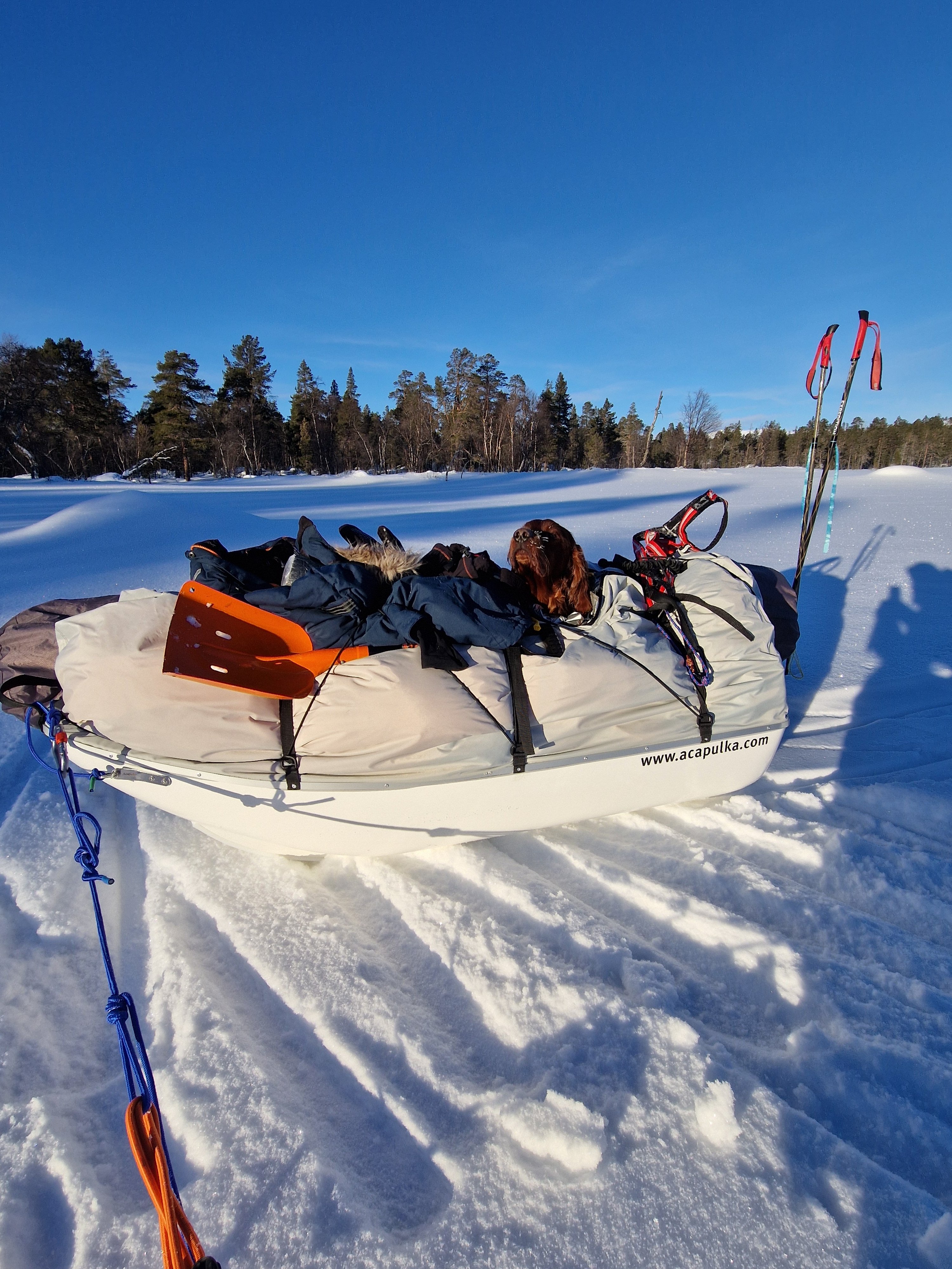 Hva er tyngst? Tung pulk -> hardt føre eller lett pulk-> tungt/løst føre? Men hvis du kaller skare med gjennomslag for hardt føre så blir det en annen ting, på hardt føre er jo knapt trinsa i bruk, det er tuppen. Skare er vel det som vil være problemet å det problemet er nok ikke unikt åsnes. Stavene duger helt fint med tung last, her fra en liten ukestur i femundsmarka I februar. Skadet irsksetter på 27-28kg.- 14 svar