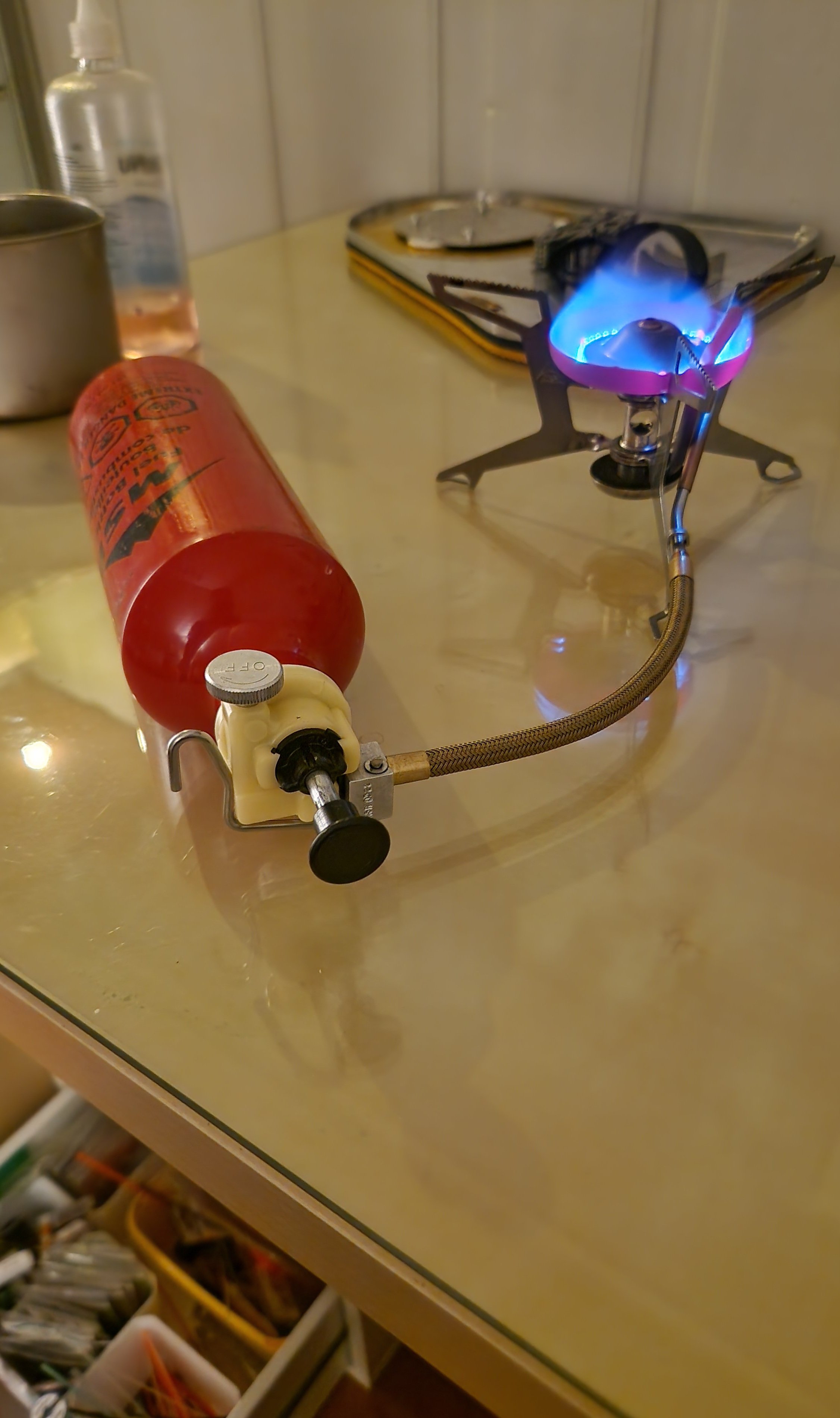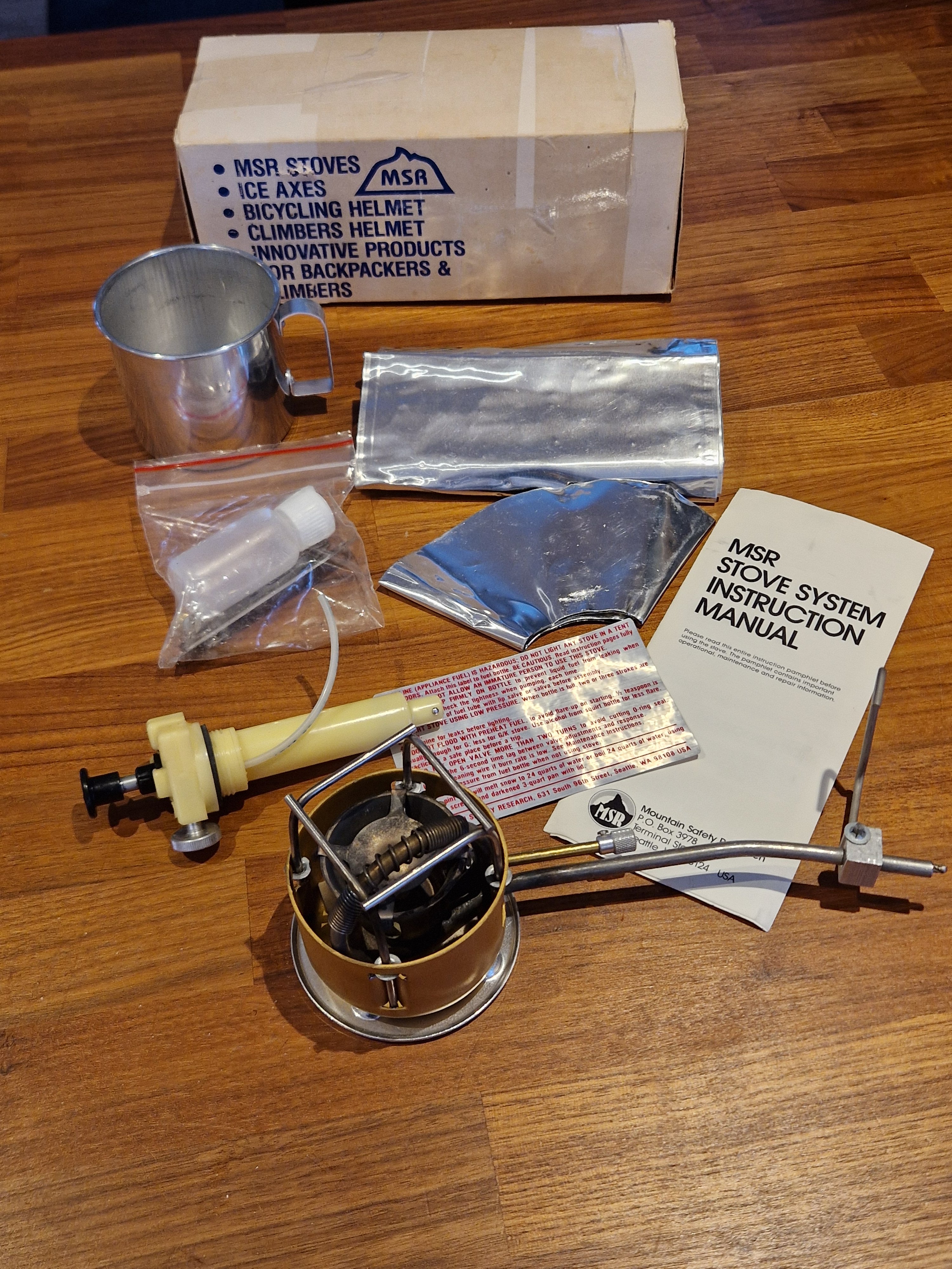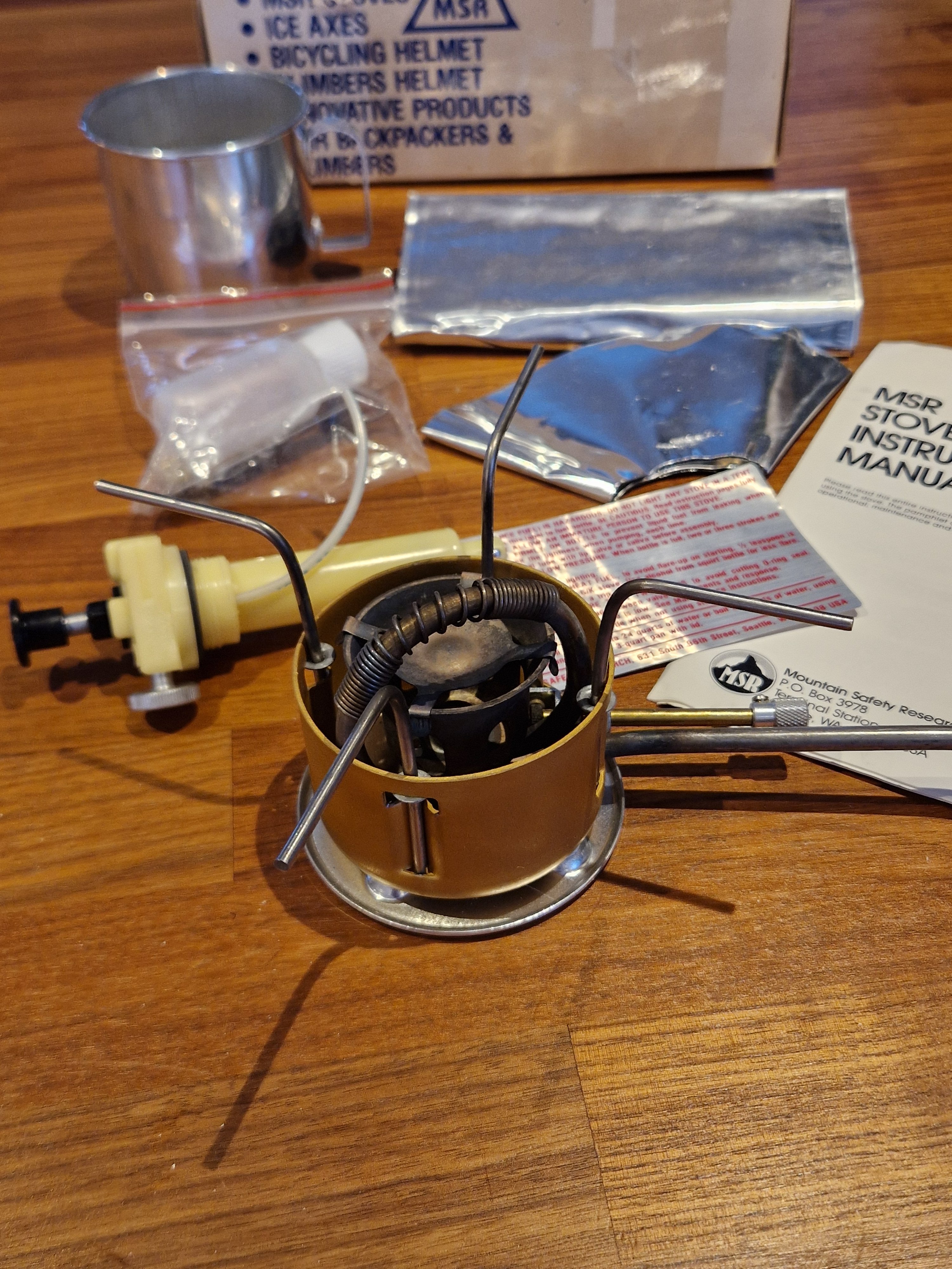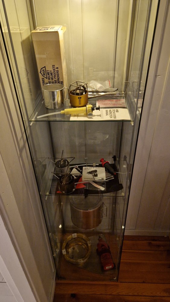 Noen bilder av hva som befant seg inne i esken, skal være relativt komplett. Ikke akkurat ukjent innhold for noen med msr brenner. Men de tidligere kom med aluminium kopp for beskyttelse av brenner under transport og spritflaske for forvarming. Msr verktøyet er også noe simplere på disse modellene. Produsert 6/1982. Veier 299gram, en XGK II Shaker veier rundt 286 gram. Spørs om det er sparker "fliten" som drar opp de få grammene. Denne utgaven er såklart uten shaker jet men har rensekabel. Pumpa er testet etter den fikk nye o-ringer og slange. Fungerer helt utmerket, pumpeskaftet har noe lengre vandring enn dagens duraseal så det virker som at den bygger trykk en del raskere. Justering av flammen er relativt lik dagens pumper, men kanskje bittelitt mer følsom. Blir spent å prøve sammen den nye X/GK'n da den skal ha et messingfilter under dysen og dette skal vist gjør den enda bedre på lav effekt.Flammebilder kommer! Ser ikke problemet med å bruke primuser, fult mulig å holde de i veldig god skikk likevel om det brukes. Ble et gratis glassmonter her om dagen, perfekt oppholdssted for noen gamle primuser 😆