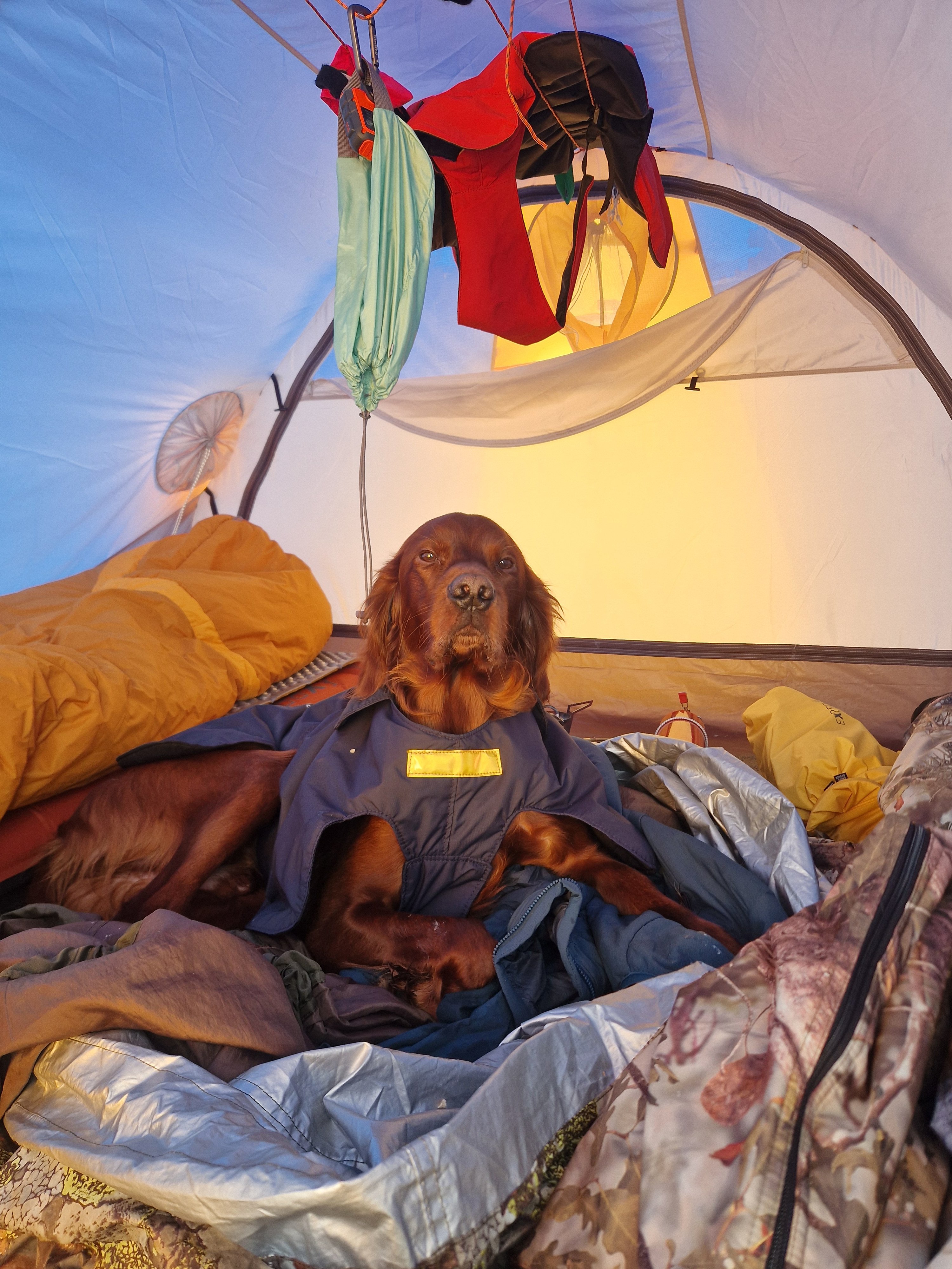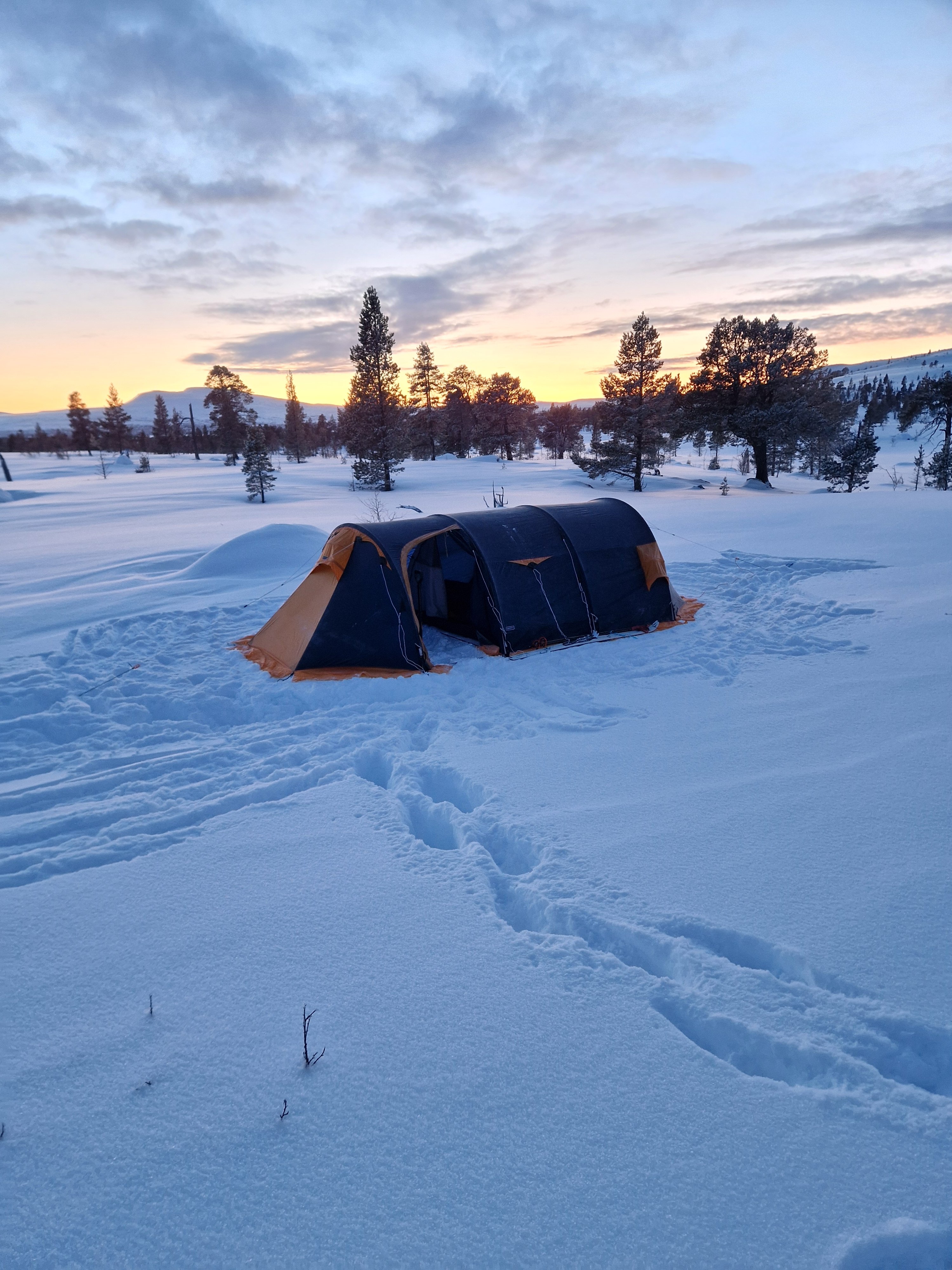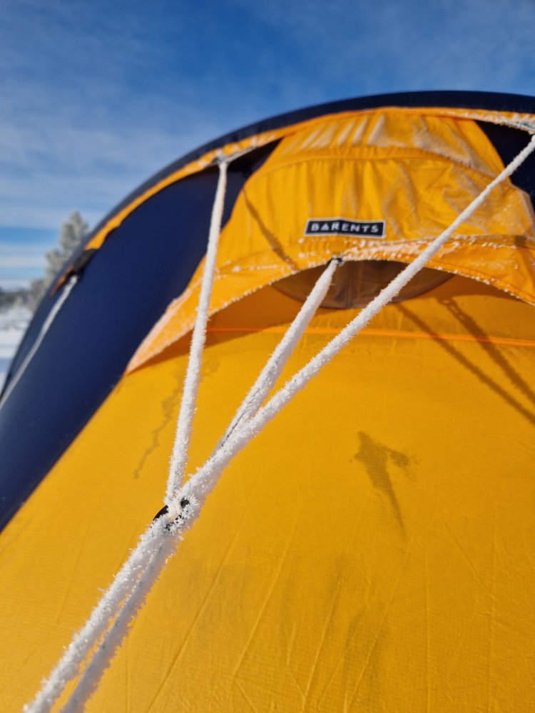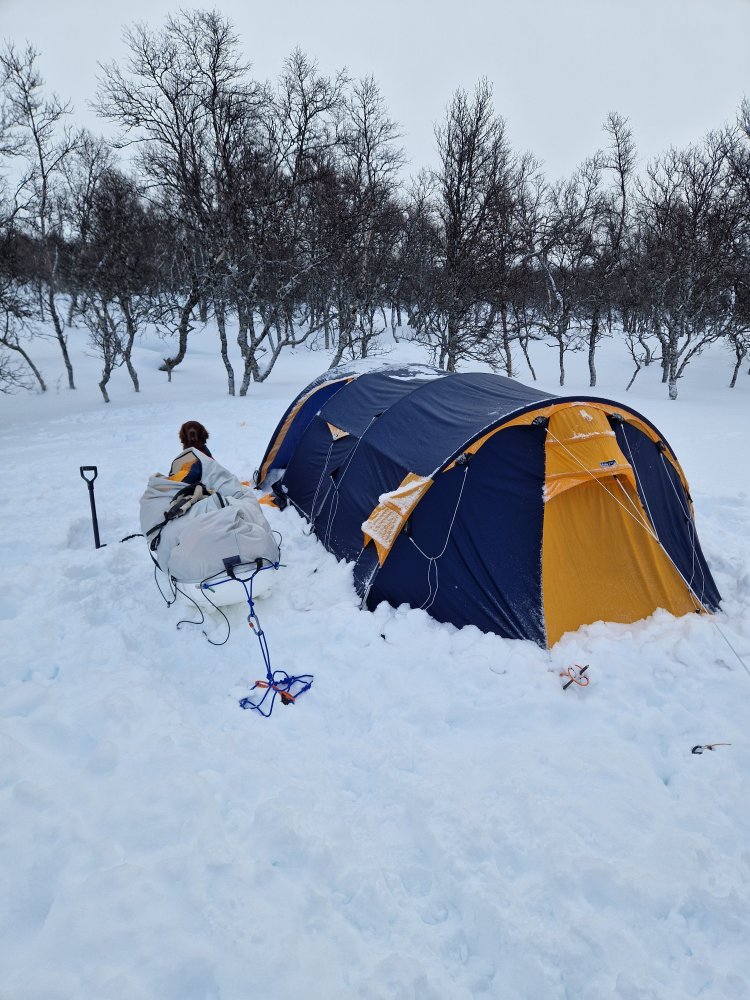 21. Heisann! Det stemmer er et Artic 4 Polar. Den ene kvelden var det relativt kaldt (rundt -25) da kjørte jeg to brennere for å tørke opp en fleecejakke og noe hundeutstyr. For litt kos tror jeg en brenner hadde klart seg fint. Er vandt med spitsbergen 3csmp å det er ikke så mye mindre med sine 180×220 i innerteltet. Det er det helt kurrant å holde bra temp med en brenner så fremt til at det ikke er bjikkekaldt. Ja, føre var slik 😬 turen var fin den, skulle ønske føret var noe bedre. Imponert over ny pulk, den veltet en gang og det kunne vært unngått. Så dette er en ny favoritt for min del
