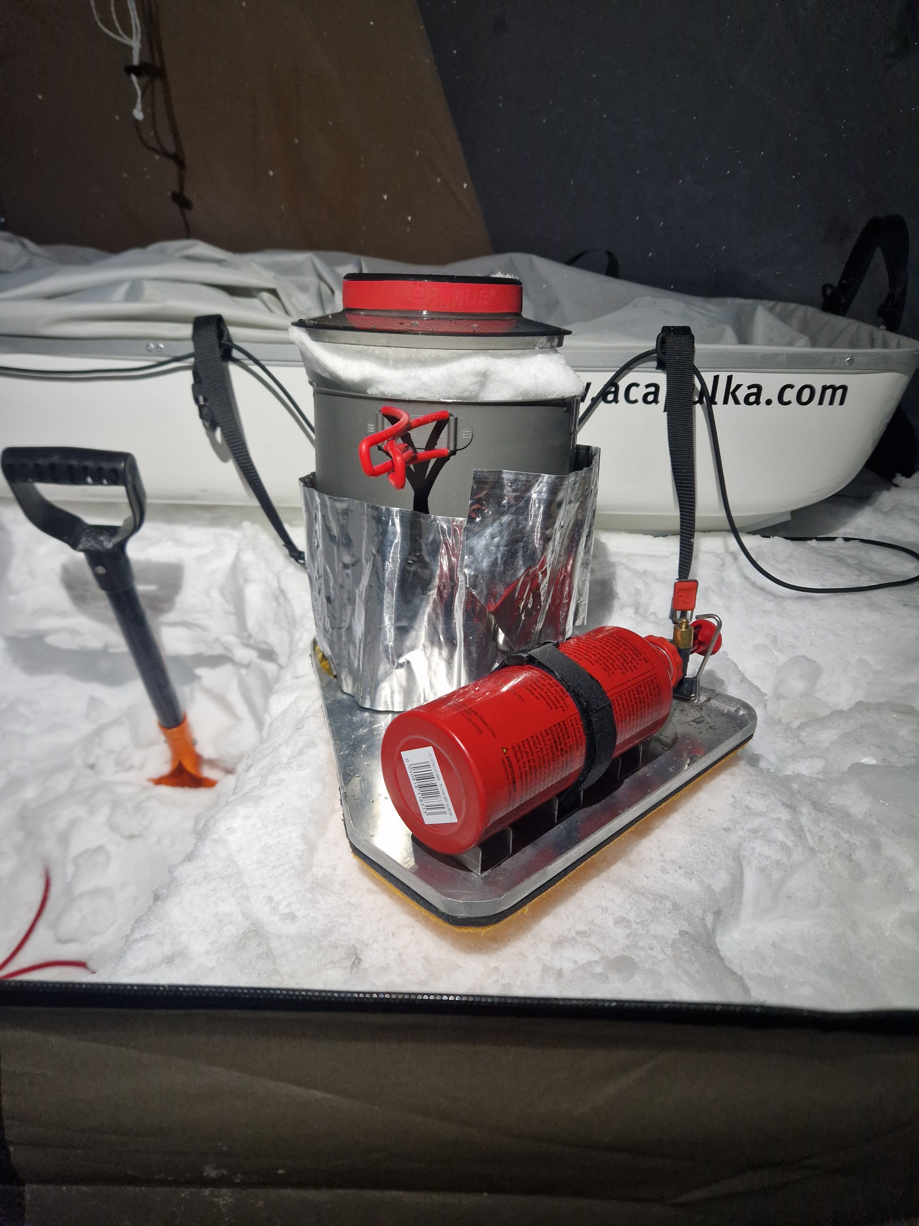 15. Kaffekjeler er veldig fine å helle av, har sett på typen du bruker flere ganger men ønsket en kjele med rundt 3L kapasitet. Idéen om håndtaket snappet jeg opp fra en instagrampost Eric Phillps la ut, han har god farts tid når det kommer til ekspedisjoner. Nå løser denne modifikasjonen et ikke problem med mange andre kjeler. Har for det meste brukt en kjele fra primus som heter for eta pot å når denne er full er det lett å søle litt når det skal helles vann over i termos/flaske. Å helle vann fra en standard kjele krever som regel at lokket må taes vekk noe som skaper mye damp og dårlig sikt i forteltet. Tror dette vil minimere mye av den problematikken.