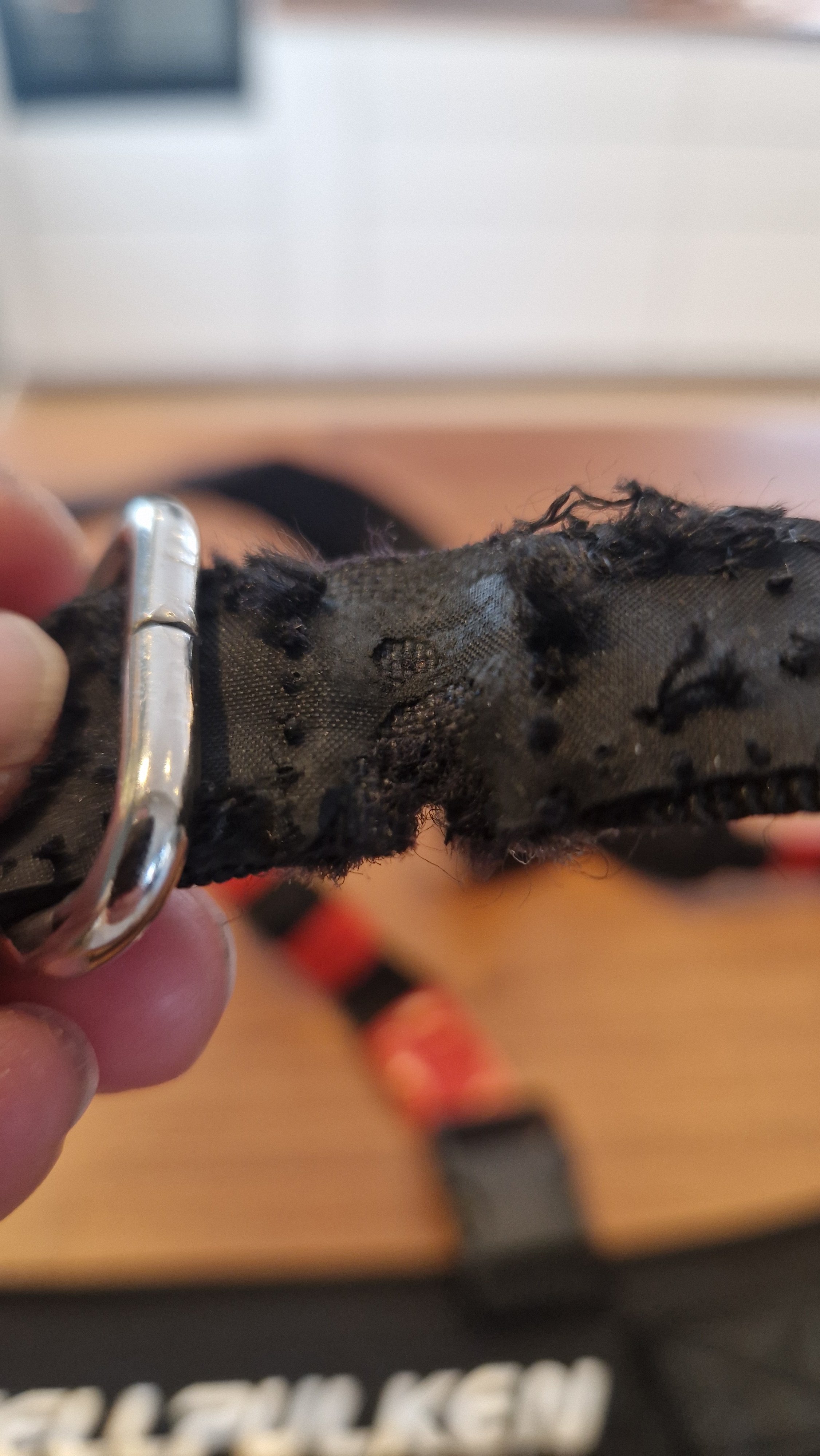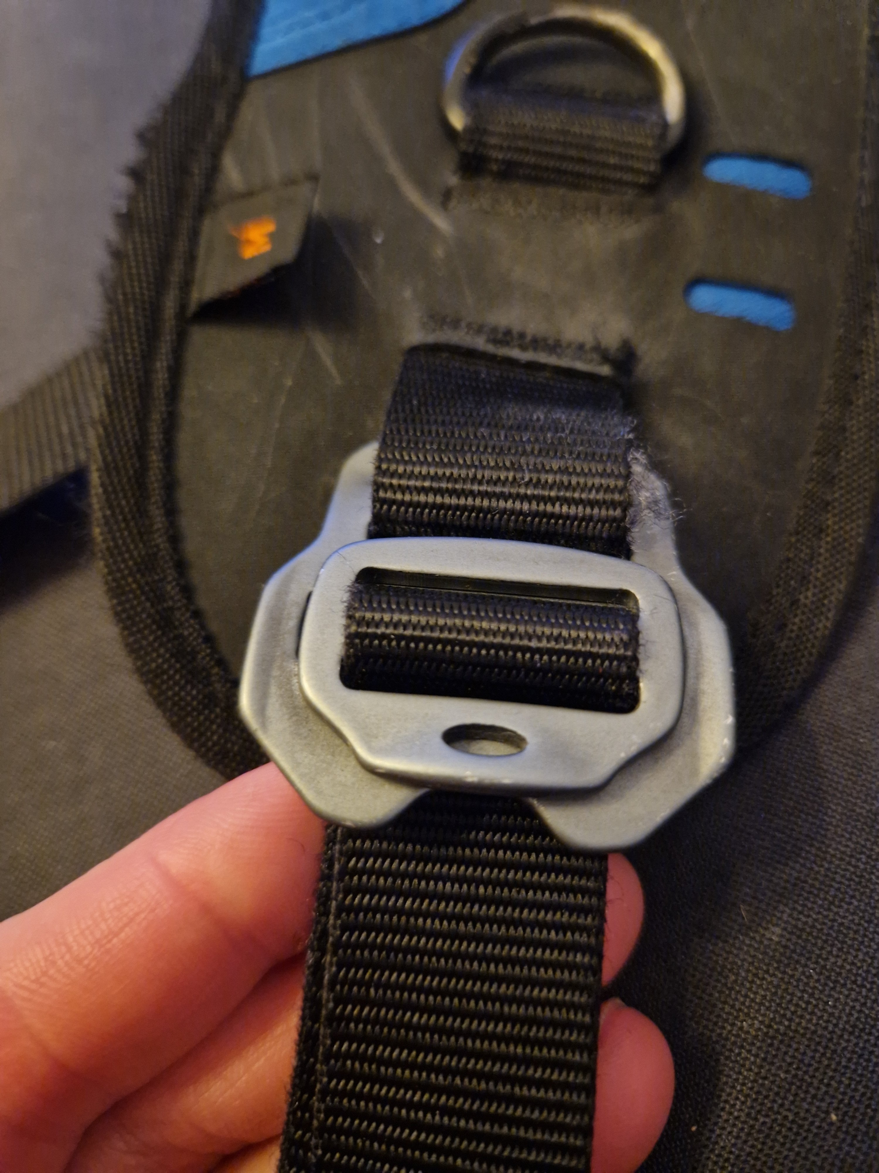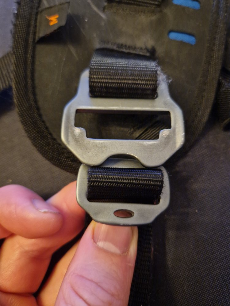 5. "Temu/Wish-xpedition pro" selen er igjen under oppgradering. Jeg har forsåvidt irritert meg grønn over kvaliteten på denne selen som liksom skal være en ekspedisjonssele. Hardwaren er som @sneakyowl beskrev den, sistesortering fra temu/wish 😂Bytter ut den originale webbingen bak til en 25mm webbing som brukes i hundeseler og diverse annet utstyr troll hundefor selger. Grunnen er at jeg ikke fant noen spenner i rustfritt for 38mm webbing. Litt usikker på hva egentlig den bredere webbing bak oppnår. Sikkert gjort for at plastspenne til 38mm webbing tåler mer enn 25mm. Blir sort webbing på alt, er bare testfit. Ny 25mm webbing, en spenne blir sydd fast og den andre låser dette og beholder justeringsmuligheter. Trenger ikke lenger en hel teiprull for å unngå at selen sklir under bruk. Beholder plastspennen for lyskestropp om jeg skulle finne på å snørekjøre med hunden. Lyskestropp får heller ingen belastning under bruk.søm er sprettet og klar for å sy fast ny webbing.innfestning til skuldrestropp rygg. Blir dobbel spenne på dette også. Da er alle punkter som utsettes for belastning byttet ut med hardware i rustfritt istede for den crappy originale plasten. Det som gjenstår er å finne en spenne som erstatter den store plastspennen på magebeltet. Kunne tenkt meg en slik spenne bare i stor nok størrelse til at den er enkel å betjene med votter på. Legger ut bilde når selen er ferdig sydd 😊