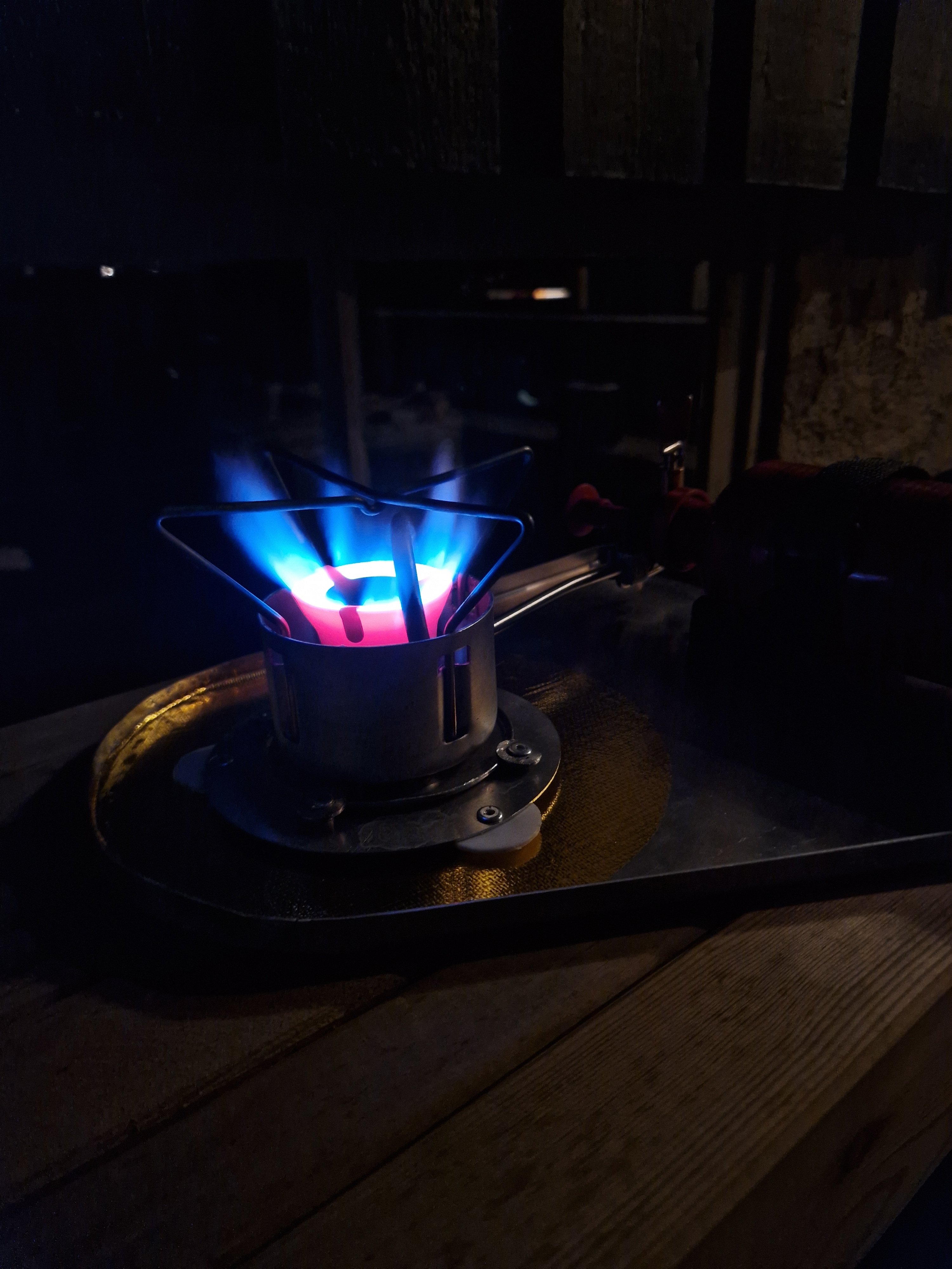 13. Test av ny kjele og en ny gammel XGK II Expedition kjøpt av @Memento mori her på forumet. Brenner såklart blått når den kommer derifra 😁 Første versjon av håndtaket på kjelen ble litt kort slik at balanse punktet ble feil når kjelen var full. Et lengre håndtak løste problemet. Solbærtoddy på trappa smakte utmerket 😅 Snapchat-216688759.mp4