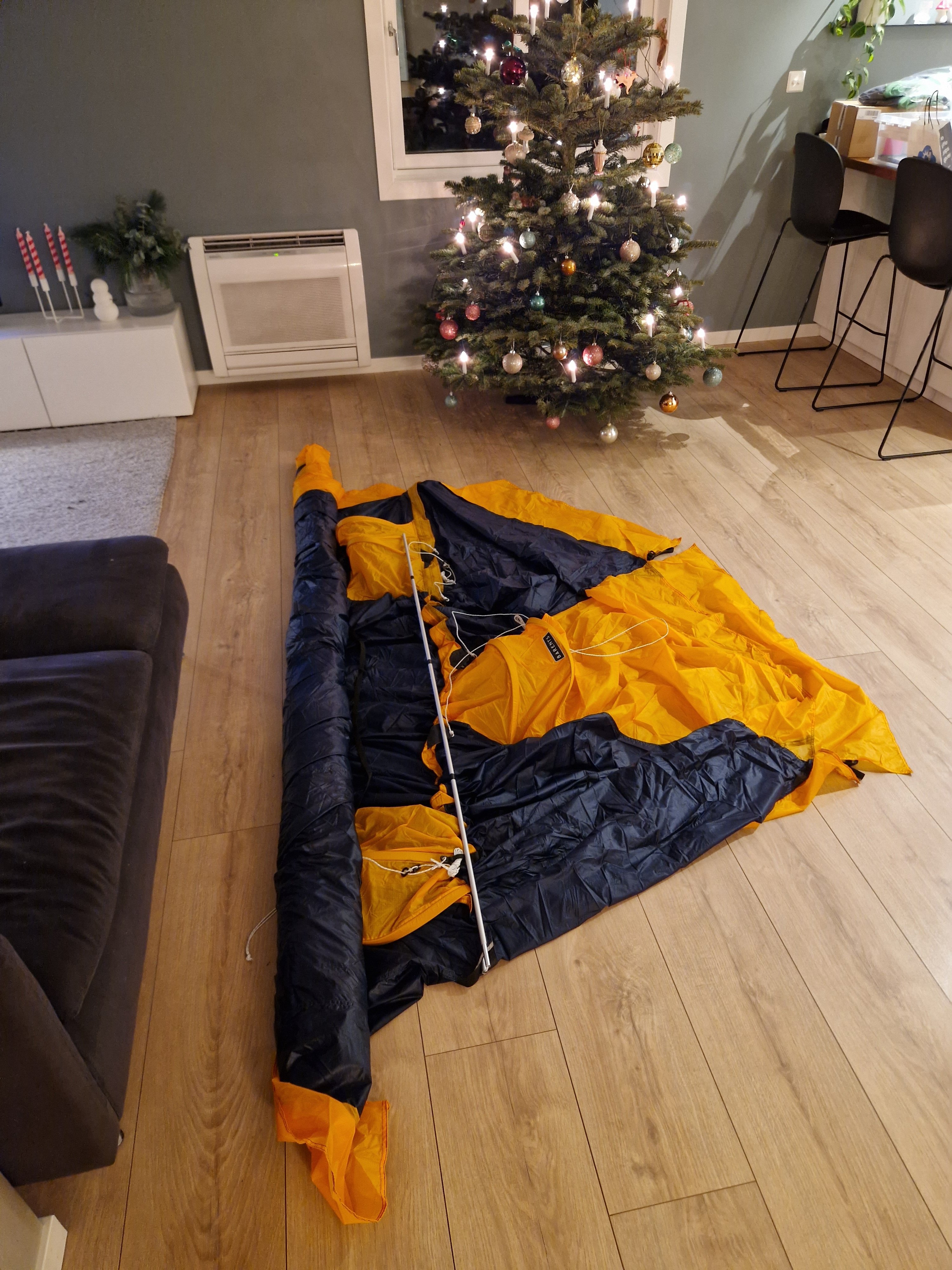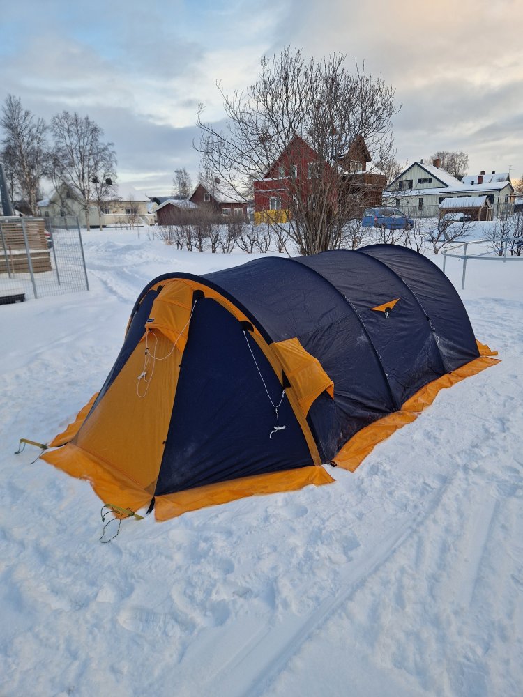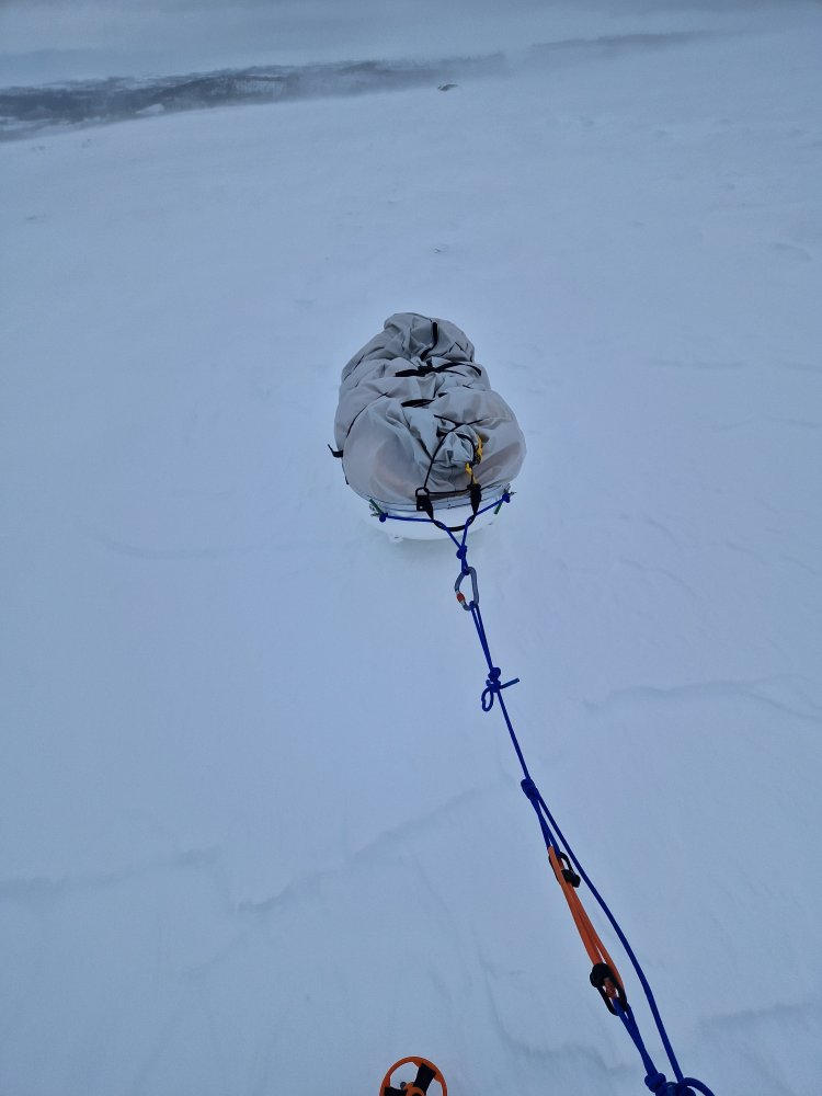 Kjøpte et BO Artic 4 Polar for en stund tilbake. Gleder meg til å få prøve det på tur. Gjort klart til bruk, teipet stenger, laget store tauløkker på glidelåser og sikkerhets karabin for å feste det i pulken.