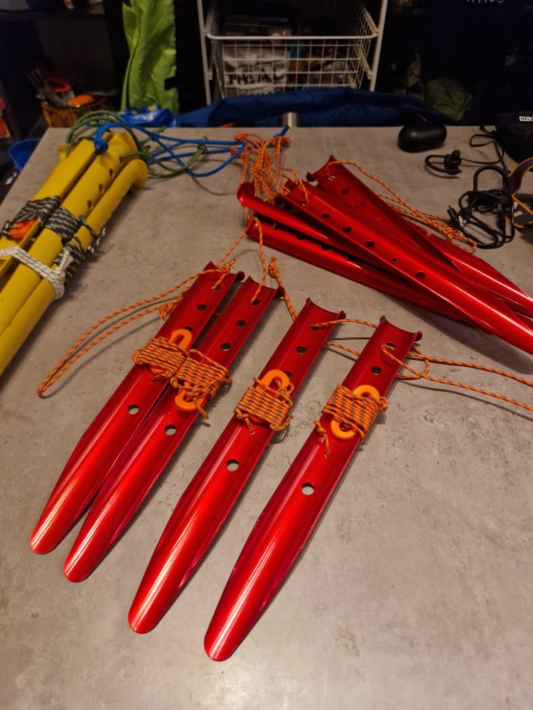 Endelig husket jeg på at Thansen selger snøplugger. Disse er 31cm og koster 129,- for 6 stykker. Ble så jeg kjøpte to pakker. Laget løkker og noen forlengere med kuldebestandige plastkrok. De gule er fra Helsport og er 50cm. Jeg betalte 500,- kroner for 8 slike. Nå ser jeg at de koster rundt 1400 kroner 😂 1400 kroner for noen snøplugger er etter min mening helt sinnsykt.- 150 svar