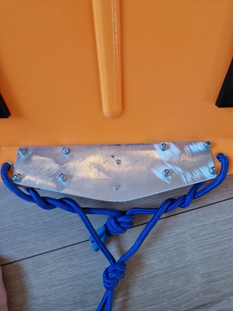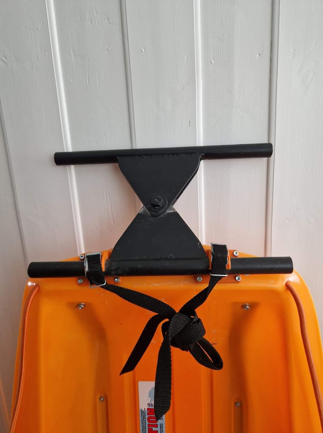Har en aluminiums plate som forsterkning på baksiden. Bruker fjellpulken dragfestene til å koble den sammen som pakkpulk bak barnepulken har ellers bare trukket pariser med taudrag.