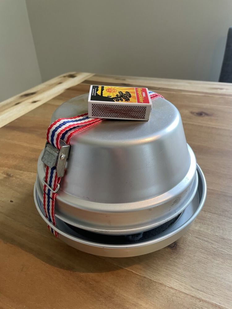 Jeg har et tosifret antall brennere, men ingen ting som smelter snø så fort, uansett vind og vær. Med den minste av kjelene konvertert til lokk for den største kjelen, så kan du fylle på 5-6 liter løs snø av gangen, og få 1-2 liter vann uten å etterfylle snø. På bildet over ser du en gammel trebeint primus pluss et billig stormkjøkken av gammelt Optimus-design fra Jula. Bak linken ser du også hvordan hele settet er satt sammen. Og selv med primus med drifstofftank etc. inni, så pakkes det hele ned til en veldig kompakt løsning under transport: