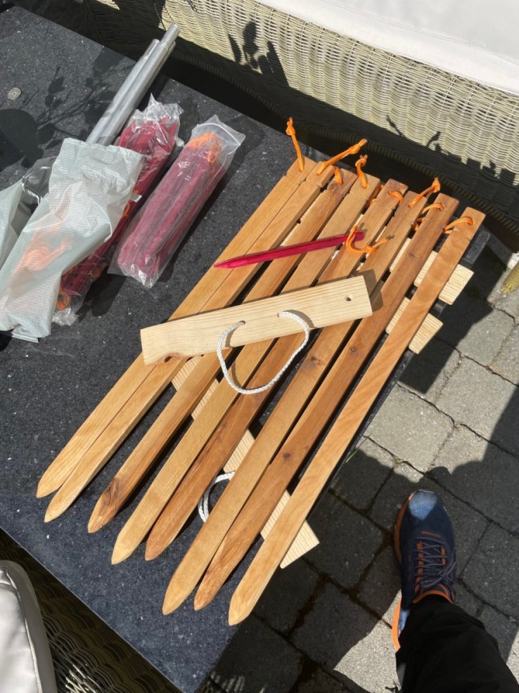 Det blir nok bra! Her har du pluggene jeg lagde meg for telting på vidda. De var helt gratis. På enhver trevarehandel ligger plank og bjelker adskilt av små lister/plank for luftingens skyld. Disse går i container når materialene er solgt, så hvis du spør så får du ta med deg så mye du vil 😎