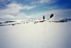 7. Hehe, joda, men det er en liten fordel å vite sånn ca hvor man skal kikke med hjelp av denne nye teknologien. Hvis ikke går man fort tom for drivstoff om man har tenkt å "fly" rundt i hele Norges fjellheim på leting etter svar. Han peker vel opp mot Dyrhaugstindane ser det ut til...
