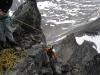 20. Standplasser gikk rimelig greit å finne. For hver taulengde nådde Ragnar, som ledet, store hyller hvor han fikk sikret seg selv nok til å ta imot Morten og meg. Lurer litt på om han slet noe med å finne feste nok på en eller to av standplassene? Mener han sa noe om det... Fjellet var fast og grovblokket, og delvis utsatt. Fant man et feste for hender eller føtter, var det trygt å bruke det. Husker bare en stein som Ragnar advarte oss mot å bruke oppover. Ellers var vel problemet for min del å finne nok fester ved et par anledninger. Opptaket i starten, og det som delvis er avbildet på siste bilde hvor Morten kommer opp. Der måtte jeg benytte kneet og leggen for å komme opp, siden sekken stanget i en stein som hang utover. Resultatet synes på leggen... Du prioriterte nok feil der ja Erik! Men nå har du ihvertfall besteget Danmarks høyeste fjell. Kanskje du skal samle på høyeste i hvert land. Nå har du 2?