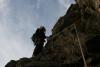 Søregga på Skardsettinden Onsdag var vi igjen nede på levelige temperaturer her på Nordvestlandet Været var fortsatt tørt, og vinden hadde stilna. Vi fant derfor ut at en ettermiddagstur til Skardsettinden (553 m.o.h) kunne være midt i blinken. Den bratte Skardsettinden ligger innenfor Hustadvika og et stort myrområde mellom Bud og Hustad på Romsdalskysten. Søregga byr på 3 taulengder (120 m) med fin klatring av grad 3-4, og er en klatreklassiker på disse kanter. Etter 50 minutter i bedagelig tempo nådde vi innsteget i skaret sør for tinden, hvor det fortsatt var skygge. Et stykke opp i 1. taulengde fikk vi besøk av sola som kikka rundt nabofjellet i sør, Skalten. Klatringa ble en ren nytelse, med flott utsikt mot kyst- og havområdene i vest. Nydelig kveldsol og vindstille møtte oss på toppen. Returen gikk langs "Normalvegen". Denne er bratt og stedvis utsatt. Et tydelig tråkk synes i det bratteste partiet, og et par rødmerker viser vei på strategiske punkter. Etter drøye fem timer på tur var vi ved bilen igjen. Temperatur, vær og lys minte mer om en flott sommerkveld-/natt enn en ettermiddag i oktober