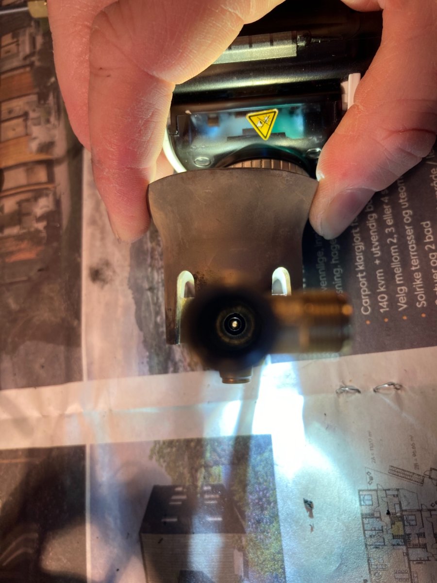 Hei igjen folkens! En lite update. 🙂 Siden sist har jeg foretatt en skikkelig rens på brenneren, som forklart her inne. Det utgjorde dessverre ingen endring, men var jo uansett ikke bortkastet. 😊 Skiftet også paden. Lyste inn i brennerhuset, og kunne da se at hullet ikke var helt rundt/åpent det hvor spindelen kommer ut. Slik var det også i hullet hvor slangen koples til. Fjernet forsiktig dette med en gitarstreng, slik at hullene fikk en jevn åpning. Skiftet også filteret på pumpa. Men i alle fall! Nå tror jeg den funker som den skal. Noe helt annet nå i alle fall. Koker 1 liter på ca. 3.5 min. Fremdeles litt gult i flammene, men sier meg fornøyd. 🙂 Ikke godt å si akkurat hva som hjalp. Kanskje også en kombinasjon. Ikke så lett å se, men legger ved et par bilder. Tusen takk for all hjelp folkens! 🙂