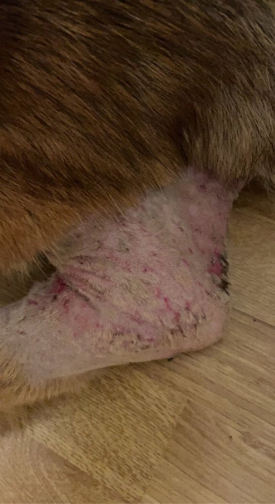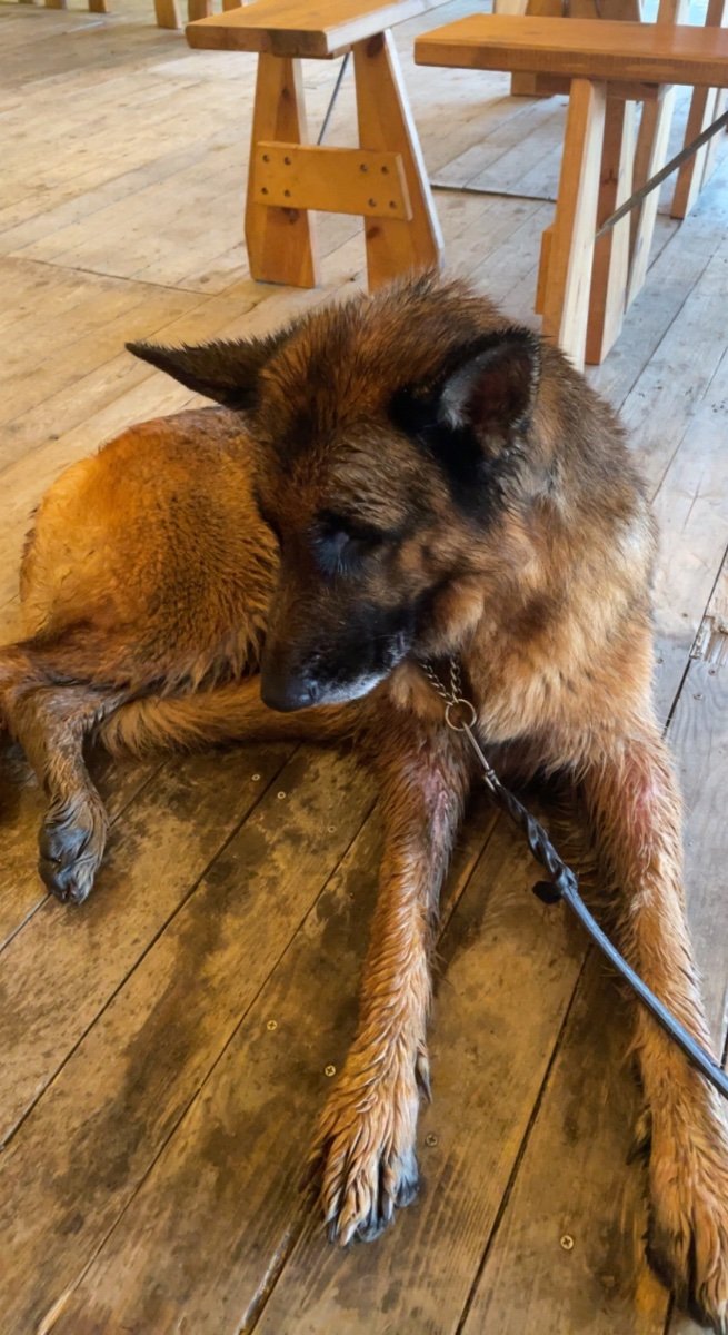 9. Jeg og Schæfer bikkja mi Mira på 6 år skal på en lang mnd tur med telt og kano. Det kommer til å bli en fin tur, men hun har slitt litt med tilbakefall av våteksem. Noen som har erfaring med det og kanskje noen tips? Har tenkt å ha med en lett håndduk, saks, smertestillende og eksem spray for å forhindre og pleie det. Da vi gikk Norge på tvers sist fikk hun våteksem et par dager før vi kom til mål. Vil helst unngå det så godt som mulig på denne turen siden den blir lengre og langt bort fra sivilisasjon og dekning. Her et par bilder fra NPT turen av våteksemen og etter pleie.