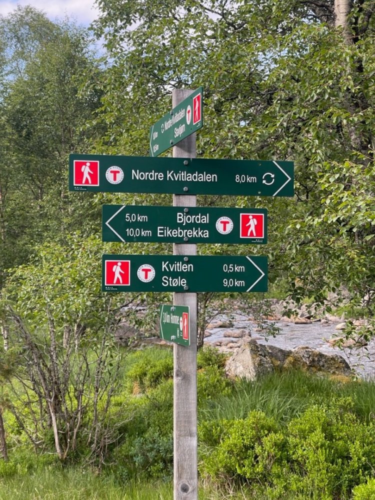 Det er lenge siden jeg har vært på lengre turer. Veldig lenge siden. Faktisk er dette den aller første teltturen på 10 år. 3 barn, sambo(ex) og livet generelt har vært unskyldninger for den berømte dørstokkmila. Men, nå er barna større, sambo har blitt ex, og på merkverdigvis har jeg plutselig mye mer tid. Begynte å planlegge turen i mars, og pga jeg viste jeg hadde 4 uker til rådighet var planen en lang tur. En SignaTur rett og slett. Haukeli til Kvitlen. 16 hytter, 215km, 7113 høydemetre. Men. Helt slik gikk det ikke😂🤦♂️ For det første, kroppen var noenlunde utrent, den er dessuten blitt merkbart eldre. Jeg startet friskt, med full sekk på 31kg fra parkeringsplassen ved Eikebrekka. Solen skinte og optimismen og gleden var stor over å endelig være i gang med eventyret. Turen inn til Kvitlen fra Eikebrekka gikk greit, lettgått terreng, og hadde ikke sekkvekten allerede begynt å plage meg kunne jeg gjerne ha kost meg litt også. Fått med meg mer av omgivelsene. Men etter 3 timer var menisken i venstre kne begynt å klage, og reimene på sekken føltes som den skulle rive skuldrene ut av ledd😂 Men jeg kunne vel ikke gi opp nå? Mobildekning var der heller ikke, så derfor bestemte jeg bare for å trøkke på. Vondt skal vondt fordrives og smerte er bare svakhet som forlater kroppen os osv… en time senere, og nå har det begynt å verke i menisken i høyre fot også. Fokuserer bare på bakken foran meg. En fot om gangen. Stadig er skritt nærmere målet. En time til går, smerten i venstre har nå forduftet. Det går litt lettere. Solen skinner, optimismen øker. Avgang eikebrekka kl 13:30, framme kl 19:00. Så 5 og en halv time. Det er ikke særlig fort. Sånn går det når man overvurderer egne evner og undervurderer terreng. Fant meg en fin plass bak hytta og fikk opp telt og fikk av sko. Kokt opp vann og en av lars monsen nesten utgått på dato frystetørka middager stod på menyen. De smaker ikke best, men 40kr stk for 5-700kcal? Det går ned:) Sovner som en stein til lyden av en klukkende bekk og fugler og den forsikrige vinden i trærene. Frihet!:) Våkner grytidlig neste morgen. Ca 6, det er blå himmel og sol og du bare vet at dette blir en fantastisk sommerdag. Vannet koker. Første bud er kaffen, deretter helles riktig porsjonert vann mengde over i skåla med havregryna i, rører litt og lar der svelle noen minutter mens man får dagens første kaffekopp i kroppen. Spiser kjapt, og pakker sammen det hele og er avgårde like over kl 7. Dagen begynner bra, ingenting verker, og terrenget er lettgått og viser seg fra sin aller beste side. Det er tørt da der har vært en lengre periode med bra vær. Når jeg nærmer meg Sløle verker det i begge menisker igjen, har gjort en stund. Har lyst å gi opp. Finner ingen tørrskodd vei over elva og ender med å vade over, barføtt fordi jeg hadde selvsagt glemt å ta med crocsene. Det går fint, vannstanden var lav, såvidt over anklene, og strømmen var nærmest ikke merkbar. Oppe ved hytta kl 12, og møter her et reisefølge av 2 ungdommer, ene fra Italia og den andre fra Danmark. De var i full sving med å filme seg selv med et gopro i over en halv time mens de tøyet og bøyet muskler jeg ikke ante eksisterte engang. Jeg kokte opp en kopp kaffe, og smørte meg et par knekkebrød mens jeg så på denne seansen. Når de var ferdig hadde vi en hyggelig samtale, og det viste seg at de også skulle videre til tommansbu, som meg. Når de skulle gå var de litt uenige om hvor stien gikk, så jeg gav dem litt starthjelp med å peke ut hvor de var, og hvor stien gikk videre og ønsket dem god tur. Selv så plukket jeg ut en liter flaske med bensin og satte igjen på hytta med lapp om at den er gratis for den som vil ha den. Da ble sekken iallefall noe over er kilo lettere. Deretter lagde jeg ennå en kopp kaffe, og satte meg i solen for å nyte stillheten og utsikten nedover dalen, og for å la kroppen hvile litt. Begge meniskene streika, selv uten sekken på, så var det smertefullt å gå. Særlig nedover og kuppert. Føttene verket, skuldrene verket. Men gi opp? Snu i tide? Spare på kreftene og søke ly i tide? Neida, på med sekken og trasket videre. Turen begynner lettgått, flatt eller svakt oppover dalføret. Pausen hjalp, smerten er mindre nå. Men så blir terrenget brått litt mer bratt. Fortsatt egentlig lettgått, men i oppover bakke går det ikke lenge før knærene igjen skriker og ber. Stopp, slutt! Jeg setter på litt musikk fra min eldgamle musems gjenstand av en musikk spiller. Ipod touch 4tg gen. Fantastisk batteri kapasitet(5-6 timer om dagen x 3 på hver lading) og lav vekt. Går videre, glemmer smerten litt mens jeg fokuserer på å gå, og nyter pink floyd’s, the wall. Terrenget flater ut igjen, og jeg skimter de to ungdommene. De sitter ved elven et par hundre meter oppover forbi det skiltede stidele, i retning skreådalen. Jeg går bort og slår av en prat. Det viser seg at de igjen var litt uenig om rutevalget, så jeg tilbydde dem hjelp igjen, og de takket og bukket siden de var på vei til å gå mot Skreå men skulle til tommansbu. Jeg benyttet sjansen til å hvile litt selv, før jeg skulle gå løs på noen relativt bratte 300 høydemetre. Litt nøtter og sjokolade senere er jeg på vei oppover. Puster og peser. Knærene verker, det går trått. Venstre foten fram. Så høyre. Et skritt av gangen. Er skritt nærmere målet. På toppen blir jeg belønnet, en fantastisk utsikt nedover dalen jeg kom fra og framover i dalen jeg skal passere. Men jeg ser på gpsen, regner ut den gjenstående avstanden og erklærer for meg selv at nok er nok, første aktuelle teltplass skal velges. Og det tar ikke lang tid å finne en kjempe finn plass like ved stien mellom et koselig lite vann, blåfjelltjødn og et litt større, ytra skreåvatnet. Klokken er nå blitt 1700, og får slått opp teltet og kokt opp vannet. Lars monsens Bolognese. Det spises fort. Utsikten nytes. Leser litt i en bok. 