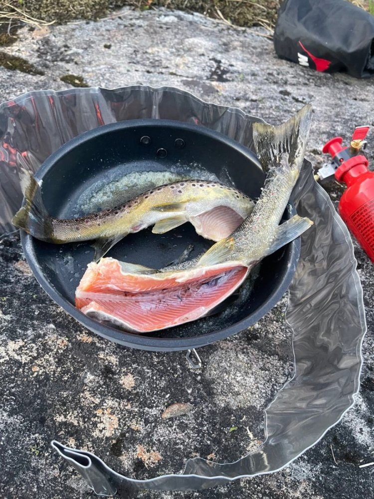 På vei mot Kvitlen. Elv like før støle, som måtte vades: Utsikt nedover kvitladalen fra Støle: Støle: Liten kneik mellom slutten av kvitladal, zoomer du inn ser du hvilken motorvei man her får servert, men knærene var ganske mos etterpå. på vei opp fra skreådalen, holder kamera i vater for å prøve få med brattheten, notorisk vanskelig å få bilder til å ginet godt resultat av bratt terreng synes jeg: Teltplass mellom ytra skreåvatnet på nedsiden og Dette koselig stedet, blåfjelltjødn på oppsiden. Sitte i teltet og nyte morgenkaffe med slik utsikt blir man sjelden lei.. slike øyeblikk får man ikke hver dag: Tomannsbu, nymalt og pen etter dugnadsgjengen hadde stått på. Fantastisk innsats fra den gjengen. De malte og pusset lysestaker og vasket og ryddet og sydde mye gardiner og jeg vet ikke hva. Så utrolig heldig vi alle er som har slike ildsjeler! Beklager at jeg ikke orker å delta, om noen som var der skulle lese dette engang….:) Liten dagstur opp på den første toppen av endhei, for å finne mobildekning. Det gikk, såvidt. Den dreiv å blafra mellom 5g, 2g og kun telefoni, men klarte ikke laste ned værmelding engang, så de G’ene funka dårlig. Men klarte ringe og sende bildeløse sms. Dekningen hadde nok vært bedre opp på selve endhei toppen. Deilig med tjukk deilig tåke som kom og gikk og veksler mellom yr, byger, og tåke igjen, på turen fra tomannsbu til Hunnedalen: Hunnedalen i sikte! Antydning til siviliasjon, mobil dekning! Her oppdager jeg også sekk sprekken, så «redning» blir her rekvirert, for å slippe vente for lenge nede i dalen. Sekken har hatt et godt liv, 10 år med mange gode fisketurer, og så sporadisk brukt til turer på hytta i 10 år til før denne turen. Ganske fornøyd med at denne har vart så lenge. Det var ingen dyr toppmodell heller.