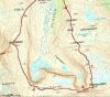 Kan godt se at det mangler litt, ja: Folk kaller turen Jardalen rundt (i Gloppen), kan selvsagt gåes begge veier. Det er ingen særlige farer annet enn muligens rundt Søreidskaret. Igår var det biten ned fra Storevarden til skaret som var utfordringen, med fin puddersnø (som klabbet i stegjerna) som vekslet med ishard skare; jeg var på nippet til å returnere samme vei som jeg kom. Jeg bruker alltid å ha med stegjern, snøøks og litt tau på denne turen, uansett hvilken vei jeg går den, tror ellers kanskje den vanligste vei er motsatt av min igår. Turen er vel ca 18 km i luftlinje, en god del opp og ned, ideell for kortfeller (subj); rennet ned igjen er ikke særlig bratt, men alltid tåreproduserende; igår var det mulig å kruse langt ned i skogavakset, i antydning til slushsnø. Tidsbruk 3-7 timer, avhengig av føre og evt teaterforestilling. 1 Mummitrollene. 2 Crux og dropp høres litt veldig ut, men tror det er riktig å sikre her mange ganger, det er lagt ut tau til sommerbruk. (Kan tenke meg det er endel som stusser over "rapellankeret") 3 Reinsdyras rike. 4 Herfra er det siste bildet tatt, kunne kanskje gitt det denne beskrivelsen: Øverste del av turen i "horisonten" fra ve mot hø, Søreidskaret laveste punkt i profilen (litt til ve)