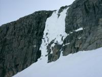 Spennende. Bilde 02-5 viser kanskje brattheten riktigere enn 02-4? Stegjern og isøks hadde kanskje gjort det mindre spennende, eller? -