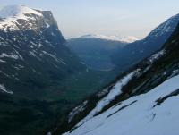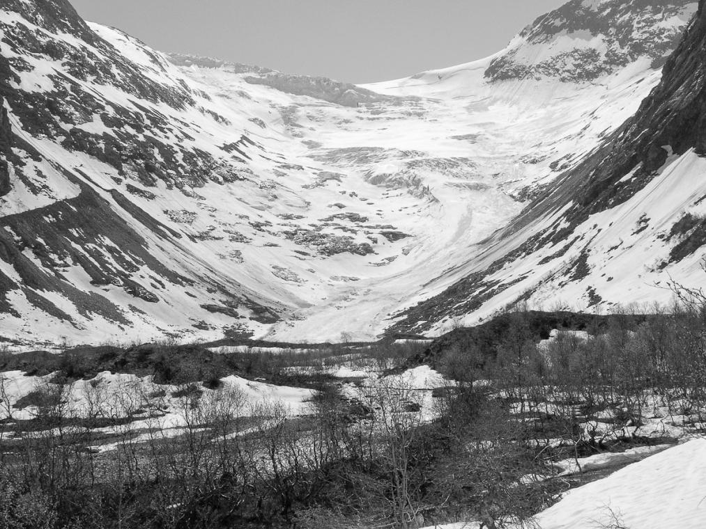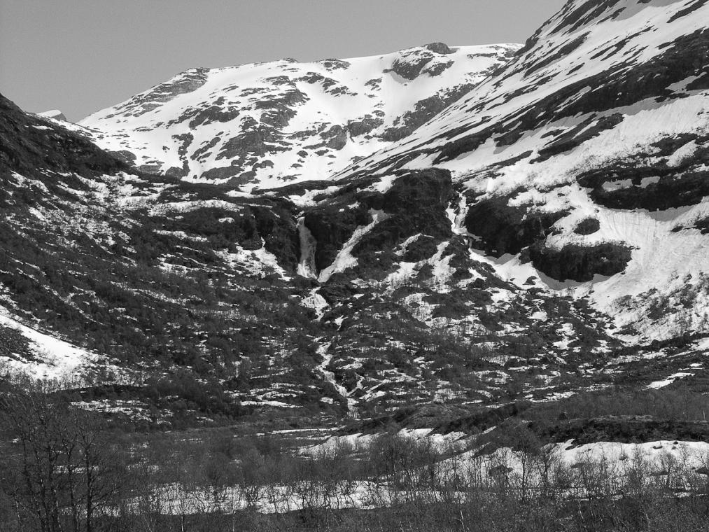 Rundt i Gloppen er snøgrensen på 700 meter, mer og mindre. Det er altfor hardt føre etter min smak, en kan finne enkelte flater/leheng med vindbåren (egentlig bare trekk) snøfjon/rim, som gir noen cm styresnø, det hjelper jo litt, mens en venter. Vil tro det er likeens i Stryn/Loen. Men kanskje til helgen?
