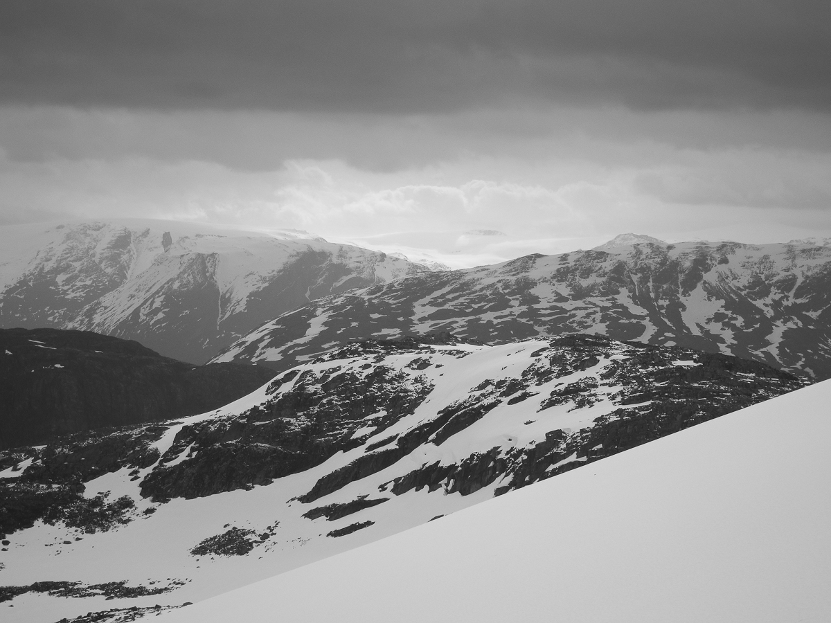 Fin. Et lite innsmett; som jeg har lest deg tidligere hadde du trolig gått greit opp sørøstegga, på det føret du hadde. Lite viktig, men du kan jo opp og kikke neste gang? Flotte bilder, Kvitegga 1691 midt i bilde 062 (snøbreen noen meter til), og R tar seg staselig fint ut på 067.