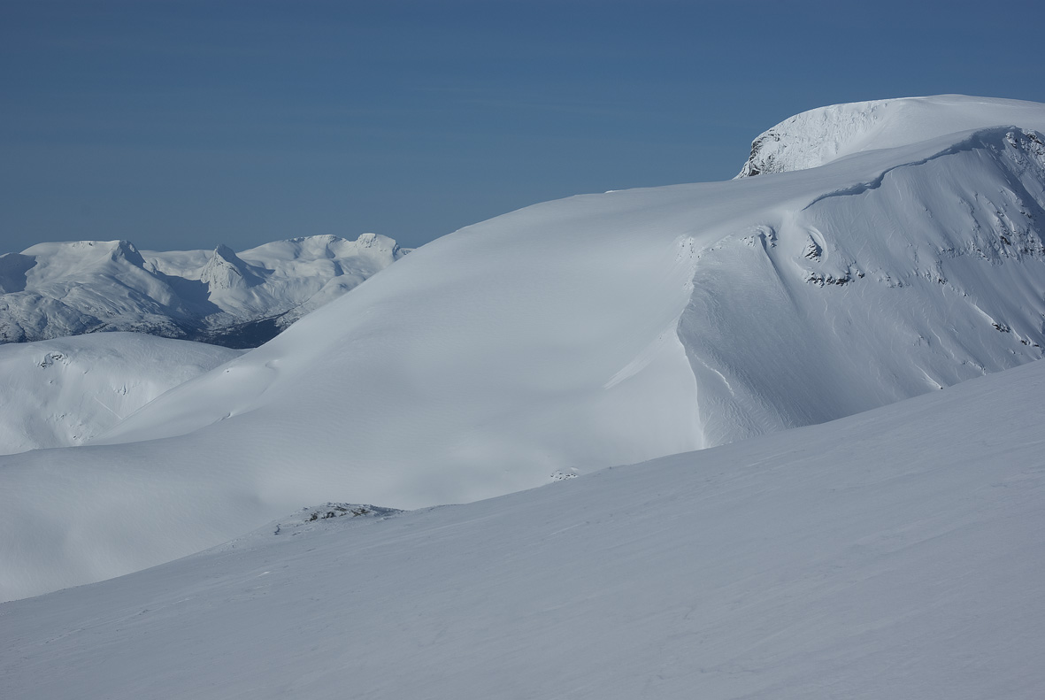 ods': Stryneskåla, med Fosdalen. I disse veibyggingstider på Skåla er det kanskje en variant ( vil tippe du har gått den) å gå via Tyvareset, litt utenfor din hø billedkant, og opp ryggen som tegner seg, et litt kjelkete parti i starten, har sjøl gått den bare opp, beskrevet i Breføreren. Var idag (igår) på Storskredfjellet, via nevnte Tyvareset, opp egga, og ut igjen ryggen mot vestlig Fosdalen, Skåla tar seg flott ut hele veien. Litt vanskelig å finne ut hvor du tar bildet fra.