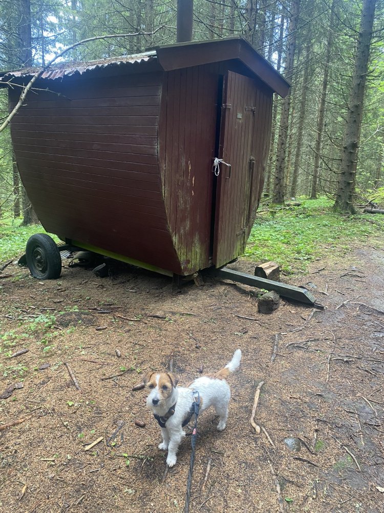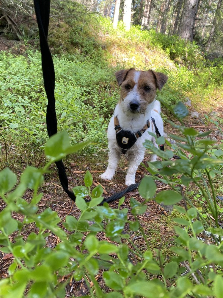 Jack Russelen Sølvi. Hun er en diva, som ikke alltid har lyst til å gjøre så mye. Er veldig glad i det gode liv med varme og komfortabelhet. Men, når vi kommer ut i skogen så våkner hun til. Nysgjerrig og skal lufte på alt. Bekker, bruer, elver begynner å gå veldig lett. Ikke vært god på å ta pauser, men dette kommer seg også sakte men sikkert. Telt har vi ikke prøvd, men så lenge hun får ligge inne i teltet med meg, så vil jeg tro dette går helt fint. Bare jeg er i nærheten, så er hun fornøyd.