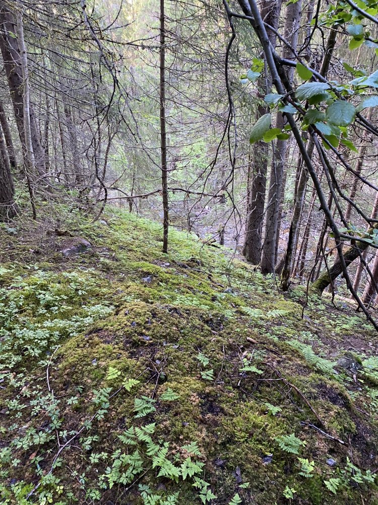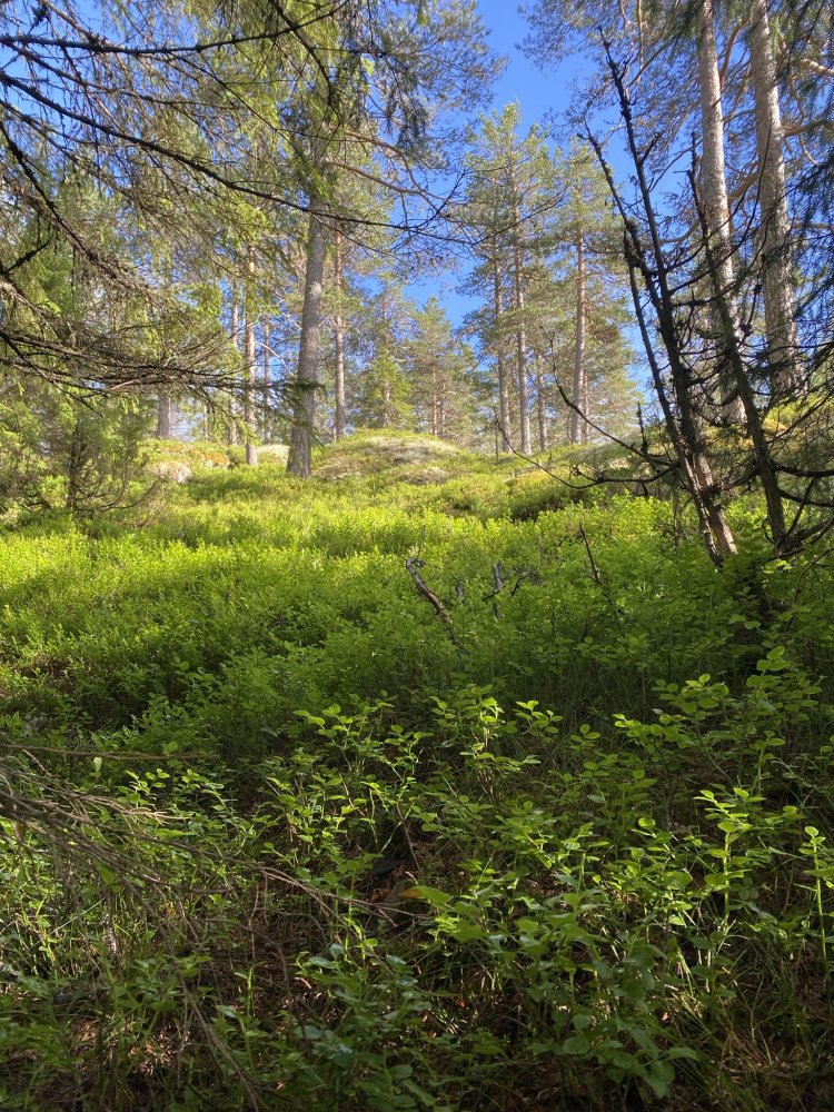 Tur for to dager siden. Etter litt rusk i maskineriet etter å endelig fått ferie, så ble det en kort tur med hund og sekk i skogen der jeg bor. Det har kommet 256 mm med nedbør i juni og juli tilsammen, så tok sjansen på ett lite bål. Greit å ha for å holde myggen unna. Vått i skogen, men grønt og fint da. Korte turer i lokal skog, er tur det også. Sølvi (hunden) fant noen knokler som var interessante også.