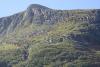 Fjerde taulengde blir et gjennombrudd. Vi ser det vi tror er toppen og resten ser enklere ut. I det øyeblikket bestemmer sjefen seg for at det er på tide med litt mer regn, som snart går over til hagl. Vi blir fort enige om at det skal mye til for å snu nå og at vi gir gass videre. Etter 8,5 timer og 7 taulengder med klatring topper vi ut. Klatringen er gradert 4+ i føreren, med beskjed om at man kan omgå de vanskeligste partiene til høyre ut i nordveggen. Vår mening spriker til alle kanter. To av oss syns det luktet av 5-ish, mens sistemann knapt ville hagitt det en 4'er. Kanskje 4+ ikke er så galt likevel? Bilder fra klatringen har jeg ikke, men dere skal ikke se bort fra at det kommer et par i løpet av noen dager.