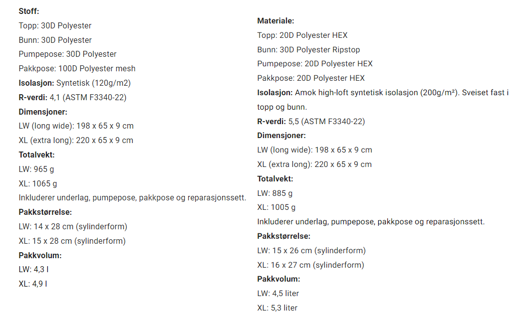 Kjøpte Barents Trollheim classic 3, så trenger derfor hjelp til og finne liggeunderlag! Jeg er nesten 2M høy og sovner lettest\best på siden, men har en tendens til og våkne på rygg! Sikla litt på Exped megmat før jeg så hvor HUGE Den er... (selv nedpakket). Hva er noen liggeunderlag som tåler Skandinaviske forhold, som også passer høye mennesker?- 4 svar