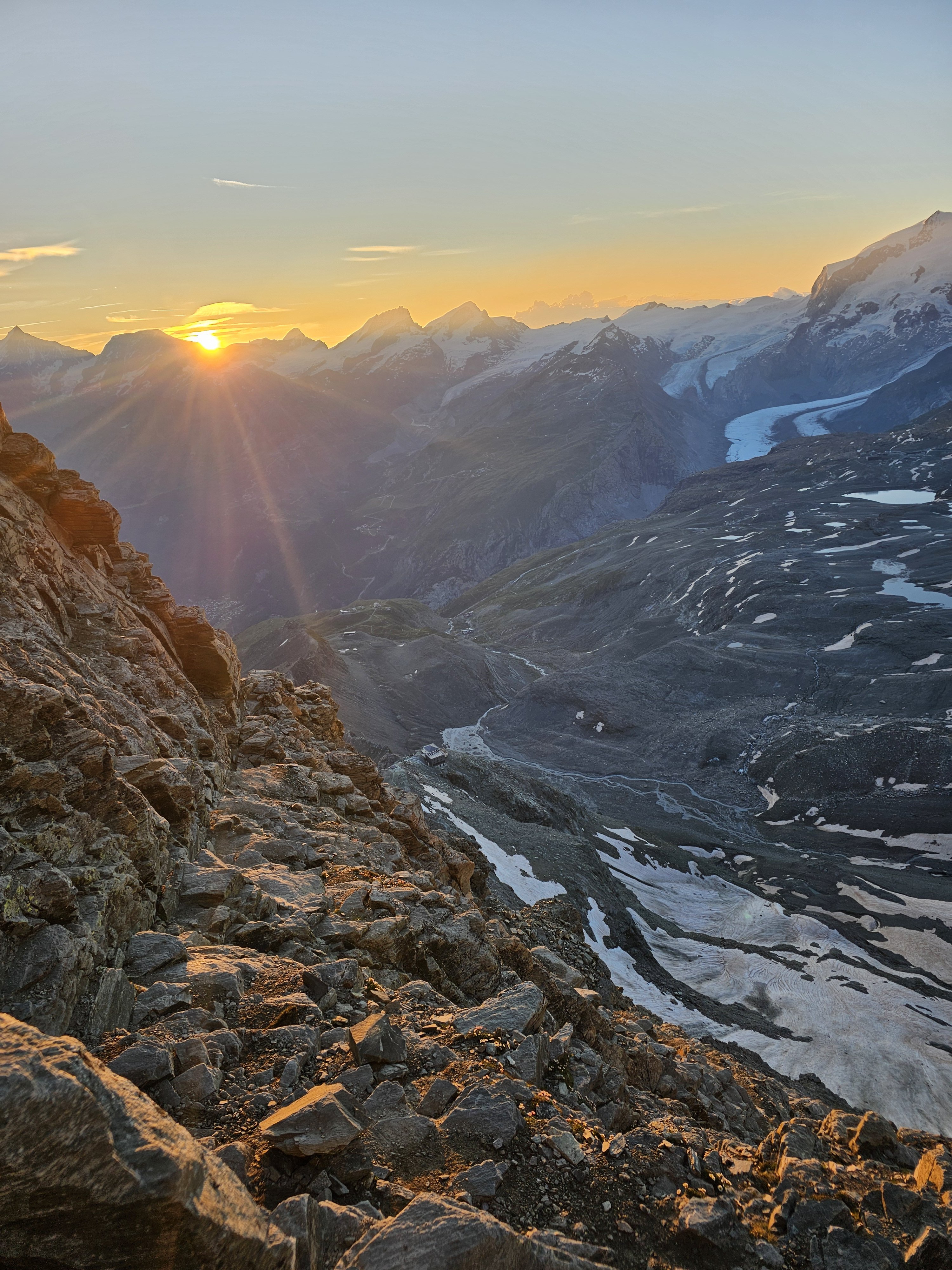 Vi la fra oss sekker på hytta etter en liten pause og startet å klatre litt oppover for å se og bli litt kjent med veien og prøve oss litt frem, da ingen av oss hadde noe erfaring med dette fra før av. Jeg har drevet flere år med fjellsikring og det gjorde at jeg syns det var mye skumlere enn de andre da jeg så hvor ustabilt "fjellet" var. I Norge hadde vi egentlig klassifisert dette som en røys. Ingenting har noe med fast fjell å gjøre i hvertfall. Det var sprekkmålere som måler bevegelse "overalt" og du hørte det rase stein høyt oppefra jevnlig.