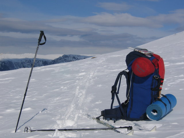 Da er turen unnagjort, den ble ikke 4 dager, jeg startet torsdag formiddag, og var fremme lørdags kveld, men ble ikke hentet før søndag morgen. Her er ruten jeg fulgte: (med ski, ikke truger som tidligere nevnt) Torsdag: Tok bussen fra Bergen torsdag morgen, og var fremme ved veikrysset v/ Skjelingavatnet ca klokken 12. Etter 10-15 minutt med litt ompakking av sekk + klesbytte og smurning med solkrem var jeg klar for å gå. Jeg fulgte den gjensnødde veien til Svartlavatnet. Gikk NNW over vannet og oppover nord for Skjelinganosi. Gikk så i retning mot Nonhaugen (dårlig veivalg, viste det seg i ettertid!), for så å gå mot Englandsøyane. Her var det mye brattere enn jeg var klar over, det var riktignok tegnet inn en sti på kartet, men denne egnet seg meget dårlig om vinteren. Istedet for å risikere liv og lemmer med å suse nedfor her, fulgte jeg kanten i retning SW, og gikk på skrå nedover mot bruen v/ Bjergane. Der var jeg ca klokken 15:15. Dårlig veivalg hadde fulgt til mye tidsbruk hittil.. Her spiste jeg lunsj, og gikk så opp til demningen på vestsiden av Kvilesteinsvatnet. Siden vannet var demmet ned tok jeg ingen unødige sjangser med å gå utpå. Det var store sprekker langs hele bredden. Etter passering Bjørnshøyden krysset jeg Selhamarvatnet. Først her fant jeg den kvistede løypen til DNT, regner med kvistingen startet lengre sør v/ Trefall. (enten så går den kvistede løypen fra Vikafjellet lengre sør, eller så var den tatt vekkk. Jeg fant den hvertfall ikke.) Jeg kom frem til Selhamar ca 1830, og da begynte det så smått å snø, og det blåste litt opp. (før den tid hadde det vært sol fra skyfri himmel hele tiden, og eneste nødvendige klesplagg på overkroppen var en tynn ullundertrøye. .-) Jeg ville helst sette teltet opp rett v/ en bekk e.l, for å unngå å måtte smelte snø, jeg har nemlig bare stormkjøkken.. Jeg gikk ca 300 meter fra hytten, og fant bekken som forbinder Raudbergvatnet med Selhamarvatnet. Jeg satte opp teltet, og fikk laget meg middag og kaffe. Det var noen snøbyger i løpet av kvelden, så det passet bra at jeg kom frem da jeg gjorde, mens det enda var fint vær. Distanse første dagen fant jeg til å være ca 16 km. (pga litt unødvendige omveier v/ Nonhaugen) Fredag: Da jeg våknet var det litt snøbyger i luften, men disse forsvant mens jeg spiste frokost og gjorde meg klar. Jeg gikk fra Selhamar ca klokken 10, samme turantrekk som dagen før. Jeg fulgte den kvistede løypen over Raudbergvatnet, inn Dyredalen og over Geitdalsvatnet. Så gjennom Holskardet. Her begynte det å bli så varmt og fritt for vind, at jeg vurderte situasjonen som "baroverkroppføre" . Slik var det i ca en halvtime før det begynte å blåse litt igjen. Jeg kom frem til Åsedalen ca klokken 15. Herfra regnet jeg jeg med at jeg kunne rukket frem til Stølsdalen allerede samme kveld, men siden jeg hadde avtale om å bli hentet søndag morgen, og det heller ikke var mobildekning, så jeg ingen grunn til å stresse med å komme meg frem. Jeg begynte å gå nordover forbi Åsedalen, men snudde rett sør for Urdaskaret. Gikk like godt tilbake igjen til Åsedalen, og satte opp teltet ikke så langt fra elven der. Distanse denne dagen var ca 12 km + ca 3,5 ekstra tur/retur opp mot Urdaskaret. Lørdag: Jeg våknet ikke før ca 9, og da til våt snø som lavet ned. Jeg hadde god tid (trengte jo ikke være nede i Stølsdalen før om kvelden), så jeg brukte god tid på frokosten i håp om at sluddbygene skulle gi seg, noe de ikke gjorde. Avgang Åsedalen ble ca 1130, iført regntøy. Jeg gikk over Hallsetvatnet, ned Stordalen og rundt Stølsvatnet. På slutten av etappen her begynte snøen å bli ganske våt og råtten, jeg regner med skiføret er over her i løpet av få uker. Jeg fant til slutt en grei løype ned fra demningen til Stølsvatnet, og fulgte veien nedover dalen, helt til veien var brøytet til Fjellstølen. Her var det slutt på skiføret, og jeg måtte gå til fots. Jeg gikk noen få kilometer nedover, før jeg krysset elven, og fant en grei leirplass på nordsiden av dalen. Her satt jeg opp teltet, og fikk etterhvert fyrt opp et bål, dog med endel flere fyrstikker enn Lars Monsen pleier å trenge. Så da fikk jeg naturlig nok også mulighet til å tørke de klærne som var blitt våt. Søndag: Jeg hadde avtale om å bli hentet av en kompis i Stølsdalen klokken 9, så jeg stod opp i god tid og begynte å traske nedover veien. Gikk han i møte omtrent v/ kraftverket, og vi tok en dag i skitrekket på Voss. Turen anbefales! Jeg kan gjerne gå den igjen, det viste seg jo at turen ikke er stort lengre enn at den kan gjennomføres på en vanlig helg. Kanskje det blir litt seinere i vår, så jeg får testet ut de tidligere omtalte trugene mine.