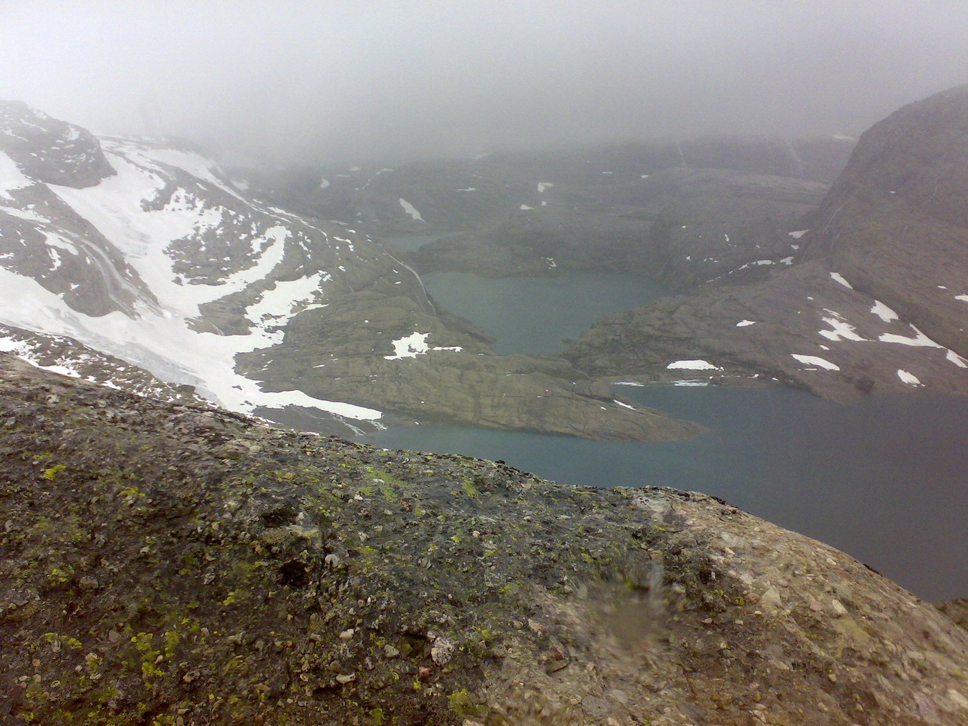 I fleire år hadde vi igrunnen tenkt på å ta ein tur til Gjegnabu og Gjegnen, etter ein tur der vi måtte snu mot samme mål. Fredag ettermiddag satte vi oss i bilen frå Bergen. Vêrmeldingen var ikkje så god, då det var varsla kuling og mykje nedbør. Det var temmeleg mørkt då vi kom fram til Hope i Hyen (Gloppen Kommune). I halv åtte-tida tok vi på oss hovudlyktene og rusla oppover den lange stigninga opp mot Lavesteinen. Vi hadde valgt denne ruta sidan den er ein del enklare samanlikna med Skorsteinsbotn, særleg i mørket. Oppover var det mykje bjørkeskog og vi såg i ettertid at vi nok skulle ha lett litt meir etter eit tråkk som går opp gjennom skogen. Ved Lavesteinen på drøyt 700 meters høgde var det tid for ein liten pause. Været vart etter kvart ganske surt med regn og til dels kraftig vind, over 1000 meter var det i tillegg snø. Det gjorde turen noko glatt til tider, då det er mange svaberg. I lyset frå lyktene våre såg vi ikkje så veldig mykje, då det også etter kvart kom tåke. Med GPS var det likevel ikkje så alt for vanskeleg å ta seg innover, men vi hadde ingen rute å følge og det tok difor ganske lang tid. Vi tok på skrå oppover det store snøfeltet (markert på kartet), men her var det litt hardt i tillegg til at det såg bratt ut, så isøksene måtte fram. Det hadde nok vore betre å gå på oversida heile vegen. Klokka passerte midtnatt før vi gjennomvåte og litt slitne skimta den etterlengta Gjegnabu. Etter ein tur på taket for å ta lokket av pipa, vart det fort varmt inne i den vesle hytta. Gjegnabu er ei skikkeleg koseleg hytte som igrunnen bare består av eit stort rom i tillegg til inngangspartiet. Hytta ligg også glemt saman på ein smal kam med bratte sider på begge sider. Det vart ein sein kveld med historier og god mat før vi la oss. I løpet av natta blåste det godt og det kom 10-15 cm tung nysnø. Målet vårt for lørdagen var å ta oss opp på Gjegnen (Blånipa), 1670 moh. På morgonkvisten tok vinden gode tak i hytta og det såg ikkje ut til å lette med det første, så vi tok heller ein roleg formiddag. I tolvtida kom det veldig overraskande ein person gåande mot hytta. Kven kunne no dette vera som var ute i slikt vèr!? Det viste seg å vera hytteoppsyn Martin M. som skulle opp å klargjera hytta for vinteren. Han kunne beretta om ein særdeles glatt og våt tur opp frå Skorsteinsbotn, det vil sei "gamleruta". Etter fleire artige historiar om hytta og området, tok han avgårde igjen. Vi tok også ut og skulle gjera eit lite forsøk på Gjegnen. Det vanskelegaste punktet er igrunnen ikkje så lagt frå hytta. Her var det nokre bratte sva med som også var delvis snødekte, men med isøkser fekk vi lirka oss over. Inn mot Gjegnalundsbreen var det enkelt å finne vegen, men det var vått og sleipt. Innimellom fekk vi littegrann sikt, men stort sett var det tett tåke. Til høgare vi kom auka også vinden på, så vi fann fort ut at det ikkje var aktuelt å gå på toppen. Vi snudde eit lite stykke før breen og prøve oss på ei alternativ rute tilbake. Den viste seg å vera noko bratt og glatt, så vi måtte fram med tauet for ein liten rapell. Utpå lørdagskvelden var det verkeleg store nedbørsmengder og eg vart klissvått bare av ein kjapp liten tur utanfor. På hytta var stemningen upåklageleg og det vart ein verkeleg avslappane kveld. Gjegnabu må utan tvil vera Norges koselegaste turisthytte. Naturen i området er også formidabel. I ein liten periode såg vi den storslåtte utsikten ned mot X- og Y-vatnet frå hyttevinduet og eg kan bare tenka meg korleis det ser ut under blå himmel. Søndag stabla vi inn masse ved til besøkande i vinter og returnerte samme veg vi kom opp. Mykje av snøen hadde smelta, så det var enklare å ta seg nedover. Alt i alt ein veldig fin tur sjølv i det noko "barske" vêret.