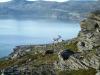 Siden det lakker og lir mot vinter, ja, enkelte steder har snøen allerede lagt seg, vil jeg komme med en forsinket turrapport fra sommerens finnmarkstur. For mitt vedkommende er dette en årlig foreteelse, noen ganger sommerstid, andre ganger om høsten. Gjennom et langt liv har jeg hatt gleden av å bli kjent med ulike deler av vårt nordligste fylke. Men Porsangerhalvøya, og spesielt Måsøy kommune, er min favoritt. På 71 grader nord, i kommunesenteret Havøysund, pleier våre turer å starte. I sommer like så. Kommunen, som ligger ytterst på Porsangerhalvøya vest for Nordkapp, kan by på alt hva en ekte fjellfant kan begjære. Hundrevis av spennende fjellvann som huser røye og ørret av ukjent kaliber, rype i mengder hvis du bare er der på rett tid, samt hare i store mengder på øyene i kommunen. Men tro ikke at du kommer lett til herlighetene. Vi befinner oss på 71 grader nord, Barentshavet er nærmeste nabo, og naturkreftene bestemmer det meste. Men i sommer, nærmere bestemt i månedsskiftet juli/august, smilte værgudene til en brokete forsamling av søringer og innfødte som pleier å møtes årlig for å dyrke friluftslivets gleder. Sommer, sol og varme i ti samfulle dager. Vi vandret sytalaust i arktisk finnmarksnatur både dag og natt. Et eventyr var det. Hovedformålet med turen var jo å dyrke gammelt vennskap, prøve fisket, og i tillegg å oppleve naturen her oppe. Begge deler oppfyllte våre våteste drømmer. Fantastiske naturopplevelser med utrolig finnmarksnatur, godt kameratskap og en og annen fisk. Jeg vet jo av erfaring at fisket her oppe kan være variabelt, men fri har jeg aldri vært. Vi blei det heller ikke på denne turen. Skulle det være noen her på Fjellforum som ønsker en virkelig villmarksopplevelse, så ta en tur til Måsøy. Jeg legger ved noen bilder fra turen. Hvis noen ønsker å se mer, så kan de ta en kikk på mitt nettsted.