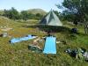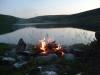 I slutten av juli og første del av august var det "tørt i vannan" som kompisen pleier å si. Det hadde vært lite nedbør tidligere i sommer, så jeg antar at dette var grunnen til særdeles lite mygg. Dette til tross for uvanlig høye temperaturer både dag og natt. Selvsagt hendte det den kunne plage oss enkelte steder, men ofte kunne en ligge i sola i bar overkropp uten problemer. Ellers er jeg jo godt vant til til "nordlandets svøpe" som Ingstad kalte myggen og knotten de bakset med i Kanada. Noen ganger kan den være infernalsk. Jeg husker en sommer jeg skulle treffe turkompisene i Lakselv for en tur på Laksefjordvidda. På flyet leste jeg en artikkel i Finnmark dagblad hvor det ble fortalt om myggsvermer som nærmest kunne skygge for sola. Da jeg traff kompisene på puben i Lakselv og fortalte hva jeg hadde lest, ble jeg grundig beroliget av en av de innfødte: "Bære slapp av du, i år er myggen så stor at det gjer godt når han sug." Så var det ikke mer snakk om den saken.