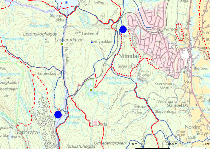 Så langt jeg kan se, er ovenstående et kart over området Breisjøen og Sinober, med ei helt annen rute tegnet inn. Ruta du etterlyser er litt kronglete i starten, og ca en halv kilometer eller så av den er sti hvor du må trille sykkelen. På det vedlagte kartet har jeg tegnet inn to blå prikker. Den øverste er ved Sørli Skole, litt til høyre for denne kan du finne Nittedal Stasjon - se etter "krysset" der Stasjonsveien går under jernbanebrua (ved Rema/Rimi). Den andre prikken er Movatn. Den blå streken i mellom er ruta du skal sykle. Ruta starter altså ved Sørli Skole. Du skal følge den blå streken som går vestover i en U, det er grusvei og oppoverbakke. Bro over jernbanelinja. Der hvor U'en er "ferdig tegnet" og går til vest igjen, er starten på stien. Den er litt vanskelig å oppdage når du sykler, det er bare et lite sånn løypeskilt i kanten av grusveien, og er lett å kjøre forbi. Jeg tror det står Movatn på det skiltet, men jeg er ikke sikker. Denne stien er noen hundre meter lang, og jeg pleier å trille sykkelen her. I andre enden kommer du ut på grusvei igjen, og da følger du bare skiltinga til Movatn. Du kjører delvis langs linja. Grusen er grov, og veien er av varierende kvalitet. Mitt tips er at du studerer et markakart nøye, tar det med deg en søndag og prøvekjører. Jeg syklet her hver dag for ti år tilbake slik du vil gjøre nå, og hadde stor glede av det - fin start på dagen. Og vær klar over at det ikke bare er å ringe etter drosje hvis du skulle punktere og du har ti min til toget, her ute er beina eneste alternative transport (REDIGERT) Jeg oppdaget at du planlegger å sykle videre til Oslo også ..... Det er to veier du kan ta fra Movatn til Oslo, den ene er å følge toglinja fra Movatn Stasjon og til Sandermosen på grus, den andre er å følge bilveien, som er litt lenger, men da på asfalt. Mye bratte bakker, stram opp bremsene! Jeg vet ikke hvor godt trent du er, men dette er en ganske lang tur, du får kjørt deg på veien hjem igjen. -