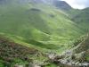 29 august i år dro jeg til England for å gå den ruta som Alfred Wainwright har gjort så populær blant "walkers"; fra St. Bees ved Irskesjøen til Robin Hood's Bay ved Nordsjøen, rundt 190 miles eller i overkant av 300 km. Ved hjelp av litt søking på nettet hadde jeg funnet fram til en turoperatur med bagasje-eskorte som guidet små grupper gjennom denne ruta. Vi skulle bruke 13 dager på å komme oss fra a til å, noe som skulle tilsi ganske overkommelige dagsetapper på gjennomsnittelig 23-24 km. Bagasjen vår ble hele tida fraktet fra ett overnattingssted til det neste, hovedsakelig Bed & Breakfast, men et par ganger også på noe mer lukseriøst og hotell-lignende. Bakgrunnen for valg av tur var et ønske om å oppleve Yorkshire-heden, et ønske som faktisk har vært tilstede helt fra barndommens litteraturdykk i "Den hemmelige Hagen" og som ble forsterket da jeg på et litt seinere tidspunkt grøsset meg gjennom "Hunden fra Baskerville". Da jeg fant fram til Wainwright og full pakke fra coast to coast, meldte jeg meg like godt på. Ruta er veldig variert og også ganske annerledes enn det jeg er vant til fra Norge. Den starter i Lake Districkt, fortsetter gjennom West Yorkshire og Yorkshire Dales, kryper opp til North Yorkshire Moors og ender helt nede ved Nordsjøen, i den lille - og ytterst sjarmerende - landsbyen Robin Hood's Bay. Fjell, lavland, åser, beitemarker, skog, hede, klipper, kyst. Gruppa var på ni stykker pluss guide, med ett frafall underveis. Guiden vår gjorde forresten dette på helt frivillig basis, han fikk knapt nok dekket utgiftene sine og dette var hans fjerde coast to coast i år. "Because I love walking!" Ellers bestor gruppa vår av to stykker fra England, seks fra Australia pluss meg fra Norge. Den ene jenta fra Australia kastet imidlertid inn håndkledet etter ganske få etapper. Vi startet fra St. Bees den 31 august, dvs. de andre startet, jeg måtte en tur på emergencien på sykehuset i Whitehaven grunnet en hornhinnelidelse som plutselig fant det for godt å lage krøll. En meget irriterende strek i regningen å gå glipp av første etappe, selv om denne ikke fører særlig langt avsted i og med at den liksom går i en sløyfe i landskapet ved St Bees. Etter behandling dro jeg til neste overnattingssted og møtte gruppa der. Øyet var mye bedre allerede. Dagen etter tok vi fatt på det vakreste landskapet i hele England, the Lake District. Da jeg i forkant googlet bilder fra Lake District fant jeg myke, gresskledde fjell som nærmest lignet fløyel. Myke, vennlige og innbydene. Mer høydedrag enn fjell, egentlig, små tuer man rusler rundt på i avslappet tempo. Yeah, right. Vi holdt en overraskende bra marsjfart, - særlig på flatene - noe som jeg personlig opplevde som gledelig da jeg har en naturlig rask gange uavhengig hvor jeg går. Oppover og nedover, samt i myr/gjørme gikk det saktere med de fleste, men det gikk mer på dårlig balanse enn manglende kondisjon. Jeg lå som regel i front sammen med de to engelskmennene, men gikk det bratt oppover på fint underlag ble jeg som regel passert av to av australierne. Til gjengjeld kan jeg trygt si jeg var gruppa ener når det gjaldt å krysse elver/bekker/oversvømte områder, klatring opp eller ned eller generelt å bevege meg raskt i ulendt terrreng. Jeg hadde ikke et eneste fall på hele turen, og jeg hadde tørre støvler helt til jeg sto til knes i Nordsjøen. Og det var virkelig en bragd i et flomherjet England! Fjellene i Lake District var ganske bratte, og flere steder var det lagt store steiner oppover stien som en slags trappetrinn. De var mer til hinder enn til hjelp etter min mening, jeg holdt meg for det meste på kanten og griste meg som best jeg kunne oppover Loft Beck, Kidsty Pike, Lining Crag og hva de het alle sammen. En formiddag var spesielt hard med piskende regn og vind som bare økte på mens vi klatret de seks miles-ene opp til dagens første topp, siste delen gikk bratt oppover i en slags steinrøys og hvor vinden på toppen omtrent slo oss overende. Vi var tre stykker som nådde toppen først, og det gikk en hel liten evighet av tid før resten av gruppa kom pesende opp og veltet seg over steingarden på toppen. Vi andre hadde benyttet ventetida til å kline oss inntil steingarden for å få bittelitt le for uværet mens vi forsøkte å ikle oss enda et lag eller to med ull. Det var da jeg bestemte meg for å investere i gore-tex vanter - med eller uten ullfór - det er lenge siden jeg har vært så kald som jeg var på den toppen. Lake District var virkelig vakkert, og selv om fjellene var gresskledde så var de langt mer utfordrende enn det google-bildene klarte å formidle. Særlig var den steinete stien og bratte, bratte nedstigninger en utfordring for mange. Et par ganger gikk vi også langs fjellene, på smale, smale stier mellom bratte skråninger og stup. På de stiene var tåka på stupsiden kjærkommen, jeg var ikke spesielt interessert i å se ned i det bunnløse. Ikke i det hele tatt. Fra Lake District gikk landskapet over i "rolling hills and farmland" og rutebeskrivelsene endret seg fra "Strenous" til "Long & Moderate". Det var nå vi begynte å merke ekstremværet, ikke bare høljet det ned på de fleste etappene, men det hadde også regnet mer eller mindre kontinuerlig i hele august. Farmlandet var myrete og sugde energi ut av deg, og det eneste avbrekket var da vi måtte krysse enda mer gjørmete partier, "bog" på lokalspråket, eller forsere beitemarker fulle av digre okser. Jeg likte forøvrig gjørmepartiene godt, og hadde en instinktiv følelse av hvor jeg skulle trå, men det hendte folk sto til knes i elendigheten og til og med opp til hofta en gang. Oksemarkene kunne jeg styre meg for, jeg er rett og slett drita redd for disse dyra og holdt på å pisse meg ut mer enn en gang. De står der og bare glor på deg, følger deg med stirrende øyne og lett senket hode mens du skjelvende krysser deres område med hele halsen full av ur-angst. Alan