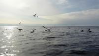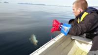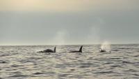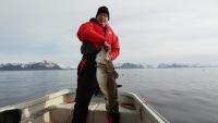 12. Sammen med faren min hadde jeg en fantastisk tur på havet i strålende vær i Lofoten. Skreien tok i umiddelbart på svenskpilken, og var av fin størrelse. Vi dro ca 30 stk, inkludert to store hyser. Mens vi lå på fjorden og fisket hørte vi etter hvert noe som hørtes ut som drønn langt unna. En flokk spekkhoggere var på vei i vår retning! Fikk tatt noen bilder av seansen med kompaktkameraet. Det var tydelig at de jaget sild da de gikk frem og tilbake, samt at skreien vi fisket var full av sild. På det nærmeste var de ca 15 meter unna båten. Hannene blir markant større enn hunnene. Voksne hanner er 6-9 meter lange og veier omkring 6 tonn, mens hunnene er 5-7 meter og veier rundt 4 tonn. Kalvene er i underkant av 2,5 meter ved fødselen og veier da 180 kg. (Interesserte kan se bilder med bildetekst på bloggen.)