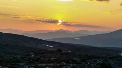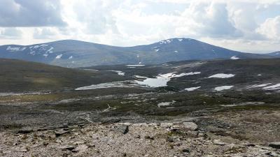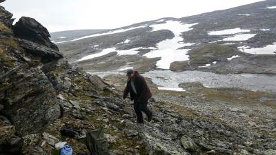 Jeg har lenge hatt lyst til å dra på tur på fjellet i Oppdal - noe som henger igjen fra mange besøk der når jeg var liten for å besøke bestemor og bestefar. Siden min gode venn har fått reinsdyrkort i Snøhetta/Oppdal Bygdeallmenning, så bestemte vi oss for å besøke terrenget og se hvordan det er det oppe med tanke på avstander osv. Etter et par tips så bestemte vi oss for å dra opp skiferbruddet og parkere der. Da slapp vi å gå opp til 1260 meter Bilen er parkert - og min kompis er klart som et egg, og litt før kl ni legger vi i vei. Siden vi skal til Storbukktjønna så må vi krysse litt oppover forbi noen hytter før vi kommer på stien til riktig sted (stien rett opp fra parkeringsplassen går mot Tjønngluptjønni. Utsikten mot øst, tvers over Drivdalen og mot Brattstigen. Det er godt og varmt, vindstille og et eldorado for mygg. Marius er smart og har med seg et lite myggnett for hodet sitt mens jeg må nøye meg med masse myggstift. Solen på vei ned bak Trollheimen i det fjerne. Vi er snart fremme ved Storbukktjønna. Teltet er oppe, vi slapper av og ser på solen som setter seg. Storbukktjønna - som del av byggetilatelsen satte oldefar ut yngel her flere år på rad. Det har virkelig gitt avkastning. Det var noen som kom opp på lørdag ettermidag og fisket - de fikk napp på første kast. Uansett, ny morgen og nydelig vær - med en liten bris så myggen holdt seg unna. Teltet i all sin prakt. Marius har kjøpt et lettvektstelt fra USA - dette er andre turen vi prøver det og er fortsatt godt fornøyd med det. Et par kilometer sør for Storbukktjønna så finner du Tythøtjønna, hvor det også står en fin hytte bekledd med stein. Utsikten østover langs Tythøtjønna mot Nystugguhøa. Stølådalen med Nystugguhøa bak. Mens det ikke har grånet til bak oss når vi runder sydøstspissen av Tythøa, så ligger det er fandens vær sørover, nedover mot Snøhetta. Vi begynner å høre torden i det fjerne. Her utsikten mot Storbrean fra sørspissen av Tythøa. Vi finner oss til rette på en fjellhylle og setter igang med lunsjen når været over oss bryter ut. Regn, hagl og tordenbyger preger de to neste timene. Heldigvis så hadde vi et lokk til stekepannen så selv om det regn/haglet så fikk vi lunsjen vår med baconpannekaker... Det var meldt fare for tordenbyger på værmeldingen, men det var fra kl 18 og utover, ikke kl 13. Vi hadde planlagt å være tilbake i leiren da. Men men. Sykt å sitte og høre torden på alle kanter, og se lynet slå ned i nære(ish) topper.. (Nærmeste jeg så traff var vel mer 4-5km unna). Et par timer senere og vi har gått videre fra skjulet vårt og tusler langs dalen mellom Tjønngluptangen og Tythøa, og ser ned mot Tjønngluptjønnin og området bak. Fremdeles grått og det småregner - ganske forskjellig fra solskinnet tidligere på dagen. Jeg er veldig glad jeg tok med den store sekken og ekstra klær. Rester av haglen som kom - Tythøkollen var hvit på toppen når den kom i syne, men det forsvant raskt mens vi gikk opp forbi den. Ned igjen til vår leir (vi lå på borte siden av Storbukktjønna, inn mot fjellsiden slik at morgensolen kom senest mulig. Plassen var fin og markert med en liten steinvarde så det er tydelig at vi ikke var første som likte den plassen). Vi gikk ca 13 km rundt Tythøa, tok nesten nøyakltig 7 timer med pausen for tordenværet. Søndag morgen og det er strålende sol igjen. Hytta som oldefar bygde ved Storbukktjønna - senere påbygd av min fars onkel og fetter (som eier den i dag). Litt kort notis og at han var på ferie gjorde at vi ikke fikk lånt nøkkelen til den. Ser mye flottere ut i strålende solskinn enn med regntunge skyer over. utsikten nordover mot Gråurdfjellet og bak der Storhornet og Trollheimen. Siste rast før vi kommer ned til bilen igjen - sittende ved Kvernbekkhøa og ser utover mot Oppdal i det fjerne. Alt i alt synes jeg det ble en meget fin tur - det var nyttig å gå i terrenget (selv om vi ikke så noen dyr utenom en harepus), og se at området her er mye mer steinete i dalstrøkene enn f.eks Hardangervidda - noe som betyr at det tok lengre tid å komme seg frem enn vi var vant til. Dalene er også ganske brede - noe som vil gjøre det interessant når jakta kommer. Vi får se hvor interssant det er å gå opp den veien til jakta - vi måtte gå litt for å komme til andre dalen enn den som Storbukktjønna ligger i. Utstyrsmessig så har vi klart å komme oss ganske godt nedover fra fjorårets tur på Hardangervidda med allllltttfoooorrr mye stasj Formen er dog ikke så bra som den var i fjor merker jeg - spesielt oppover som får meg til å grynte som en stukken gris etter kun få høydemeter... Bortover går det raskt og greit, men å dra 120kg opp høydemeter tar på