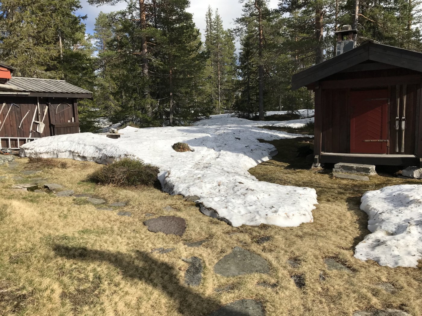 Blodfersk rapport fra Fagerfjell / Hoppestadvannet. Blest-len ligger 100 meter høyere enn her, så du må nok smøre tålmodigheten litt. Det her minka en god del siden mandag, men i terrenget er ski / truger fortsatt det eneste brukbare. Mye snø til mai å være, både i fjor og i år. I fjor hadde vi en "langtur" på vesleBle uten å krysse barflekker den 7. mai og ei fonne på 110cm i et skyggefullt parti bak hytta den 28. kan bli like sein vår i år. eirikw