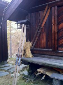 Hei igjen! De hang inne i mange år, men jeg syns de passer godt på stabbursveggen. Det henger forskjellige ski til pynt på husveggene rundt her, har 7 par hengende her og på hytta trur jeg! Skia på bakken er sannsynligvis ganske gamle. De er gjennomborret for å ha lærband over tåa, jeg vet ikke når det ble slutt på det. Så gjennom linken, mange interessante skifabrikker. Jeg har et par av merket GJØA, skulle gjerne visst historien. EirikW