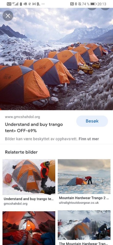 Hei, Har et mountain hardware trango 2. Det stryker på alle punkter men brukes som vintertelt spesielt i usa og ikke minst i base camp mount everest. Stor avstand mellom bakke og overtelt gir fantastisk lufting. Totalt 4 stenger som krysser hverandre gir bombesikkert telt i all slags vær fra alle retninger. Hva er det amerikanerne ikke har fortått? Har alltid spurt meg selv dette spørsmålet. Her er ingen stormmatter eller lignende. Har hatt mitt telt siden 2002. Beklager avsporing. Tore