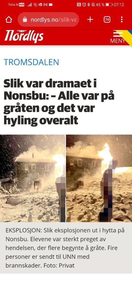 Skoleklasse involvert i eksplosjon på DNT-hytte i Tromsø