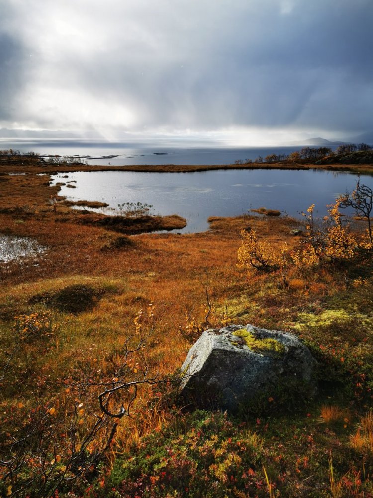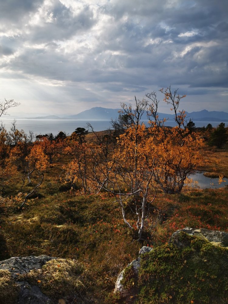 Flott i marka i dag. Ser nesten ut som om det er regn på vei. Sør-Senja med utsikt i retning Harstad. Tore
